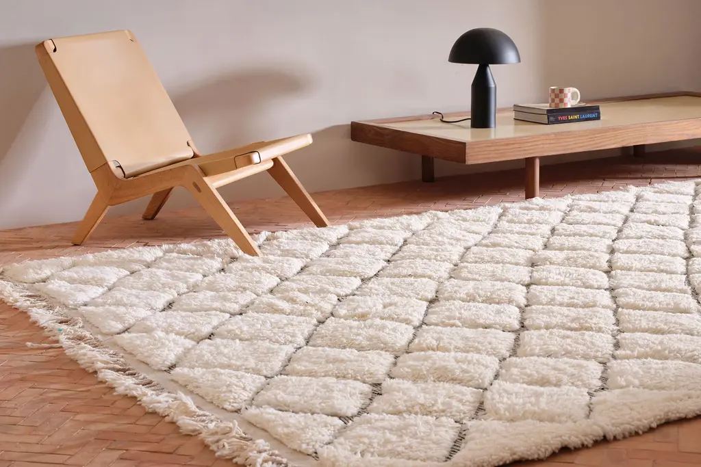 Our Moroccan pieces are each one-of-a-kind. Much of our collection was woven between 30 and 100 years ago, and curated by us. Other rugs in our collection are fresh off the loom and made with traditional techniques. Moroccan rugs don’t come with a key. As with any painting or poem, their motifs have many subjective interpretations. Originally made for personal use, these rugs took months to weave, documenting a shifting tide of events and emotions in the weaver’s life.