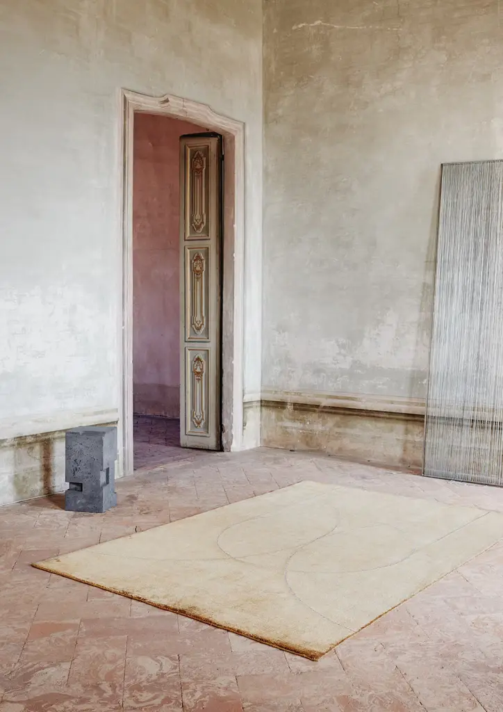 Add cozy comfort to your floor with the loom-knotted Circulus Rug (2018). Subtle symmetry and integrated circles create a sophisticated design in Circulus, fusing contemporary aesthetics with a nod to Art Deco. The nature-inspired colors make it easy to blend with most decors, while the viscose gives the rug a beautiful luster and the New Zealand wool adds natural warmth and softness. Handcrafted by Linie Design's artisan weavers in cooperation with Care & Fair, an organization that fights illegal child labor and works to improve the living conditions of carpet knotters and their families. Made in India.