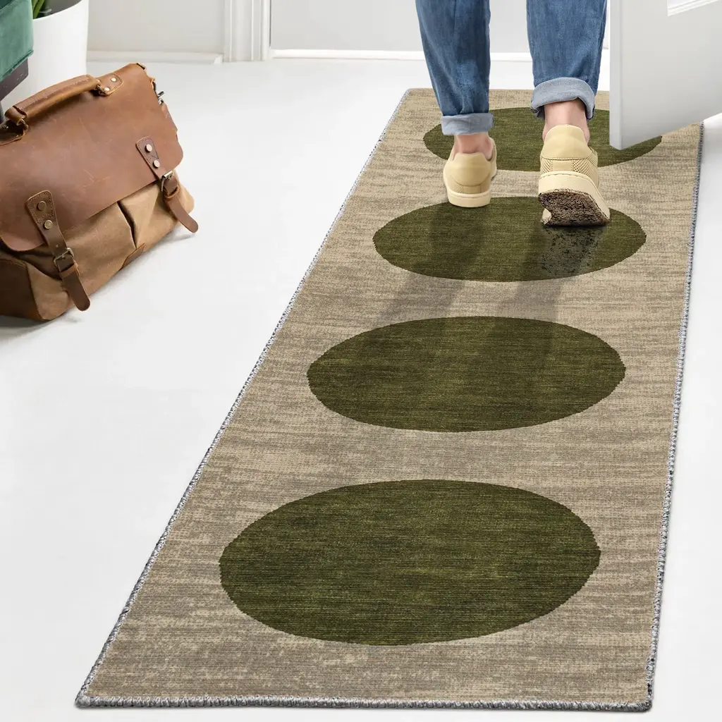 Cirkel Minimalist Geometric Dot Machine-Washable Area Rug - Olive,cream / 9 X 12