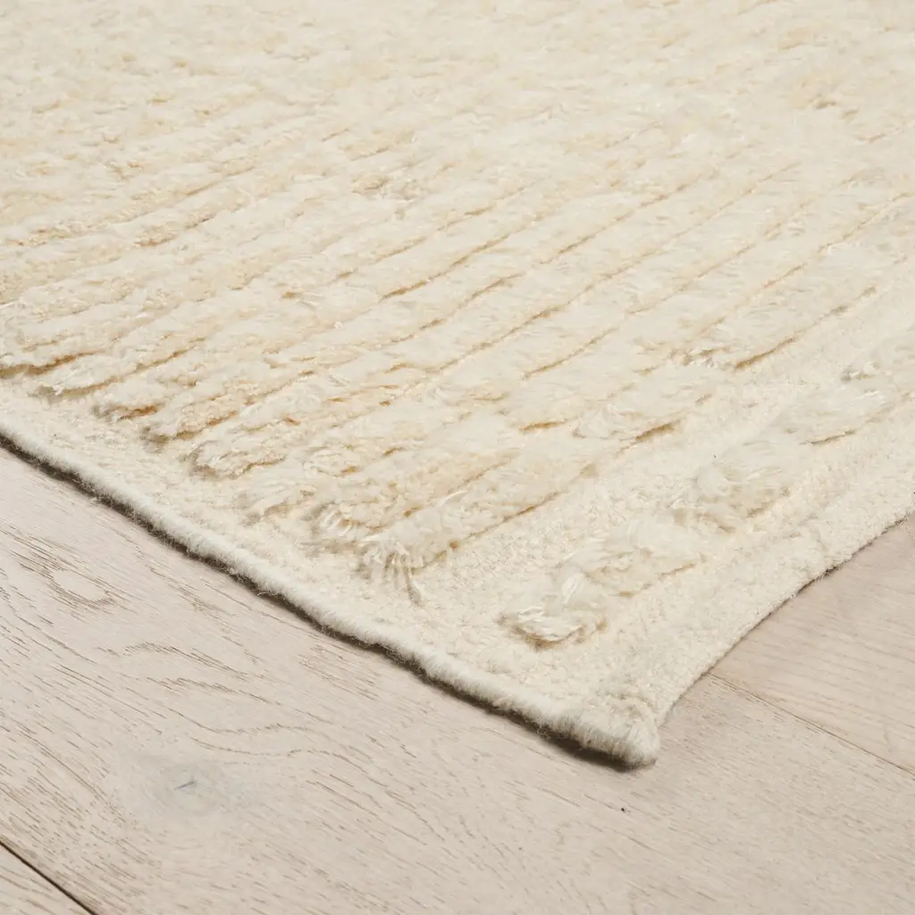 Our Cirrus Rug is a simple wool flatweave made fabulous by furry rows of fringe-like cotton-linen tufting. An understated statement piece, this unique rug adds luxurious texture to any room.