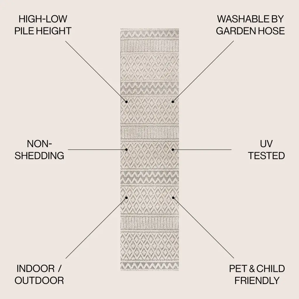 Inspired by Moroccan tribal designs, our modern geometric rug adds graphic punch to almost any space, indoors or out. The two-tone, family-friendly design is a smart addition to your living room, dining room, bedroom, porch or patio. Made from pet-friendly synthetic fibers, this rug is easy to clean.Features:Power loomed with a 0.31" pile that''s soft and durableThe gray and cream color scheme is a modern take on neutral geometric rugsMade from easy-care polypropylene - just sweep, vacuum or hose down with mild soap and water100% PolypropyleneNo backing, use of rug pad is recommended (sold separately)Power Loomed in TurkiyeActual Dimension: 2 ft x 8 ft.Color: Cream/GrayThickness measures: 0.31 in.Available in multiple sizes and/or colorsRug Care:Vacuum regularly and spot clean as needed; avoid direct and continuous exposure to sunlight; use brushless vacuum; remove spills immediately; if liquid, blot with clean, undyed cloth by pressing firmly around the spill to absorb as much as possible; for hard to remove stains, professional rug cleaning is recommended; store in a dry, well ventilated area and rotate for consistent wearPacking and shipping may cause temporary creases in rugs, which will flatten out after a week on the floor; to expedite the process, try back-rolling your rug before laying it down, and then allow ample time for the remaining creases to relaxPlease Note: Due to differences in monitors, some rug colors may vary slightly. Lengths and widths may vary from the published dimensions. Patterns may vary slightly according to shape and size selected.About us:Style your floors with JONATHAN Y. By combining fine craftsmanship and design, this New York creative studio is bringing fashion to your floors. The collection mixes sustainable organic materials, vibrant colors and trend worthy styles to create JONATHAN Y''s distinctive catalog of rugs.