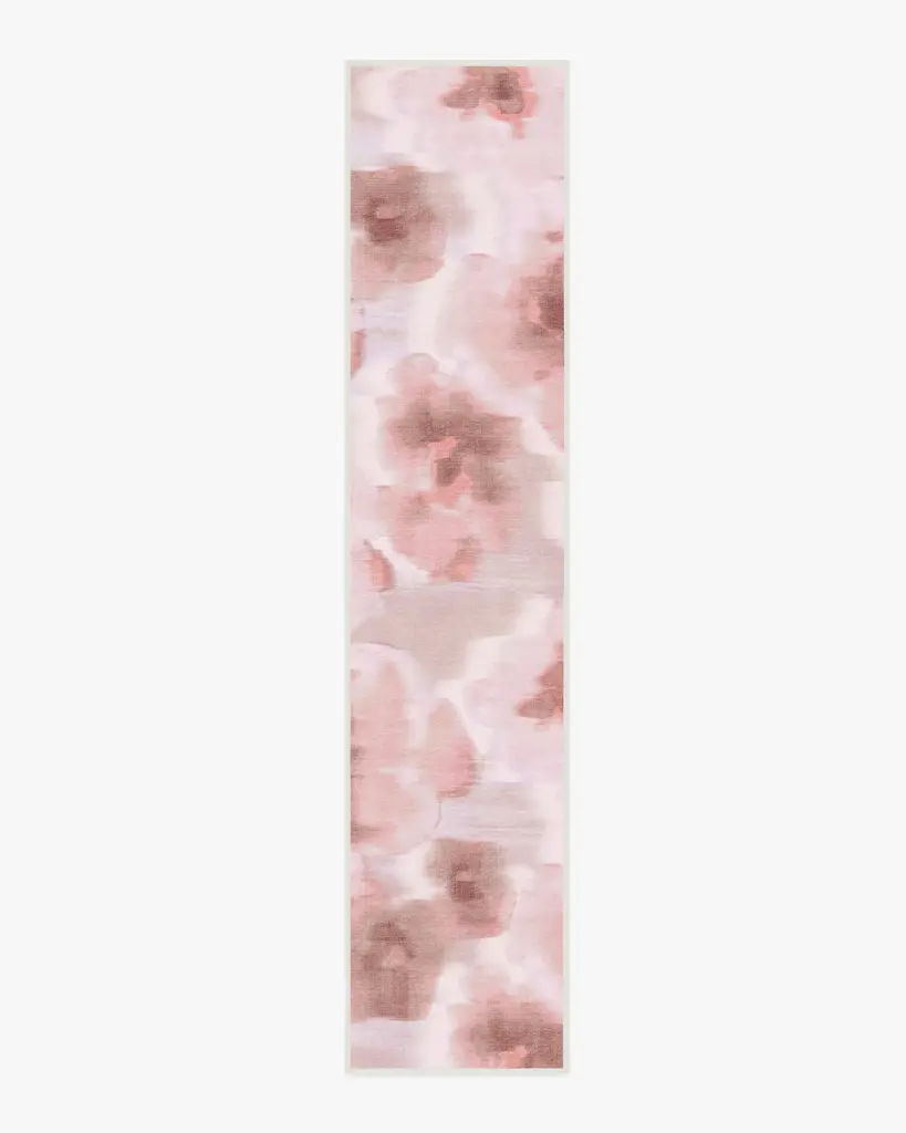 Inspired by the dreamlike beauty of blooming flowers, our Clara Soft Rose Rug design features an impressionistic watercolor effect, where soft floral shapes flow from north to south. The soft mauve pink background is delicately complemented by floral pops of lavender, light coral, and light burgundy. Water-resistant, stain-resistant, and machine-washable. Rug colors may vary slightly according to your device and the lighting in your space.