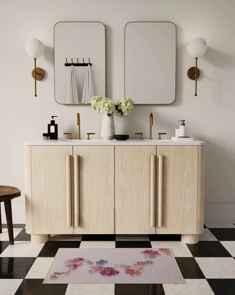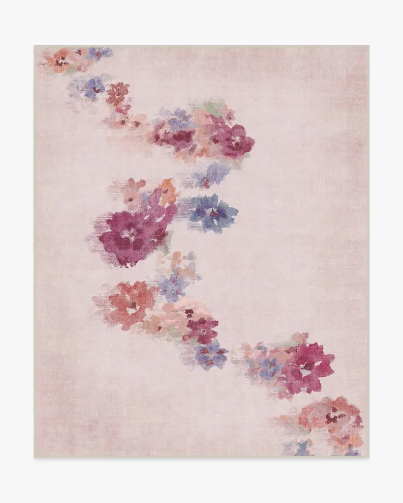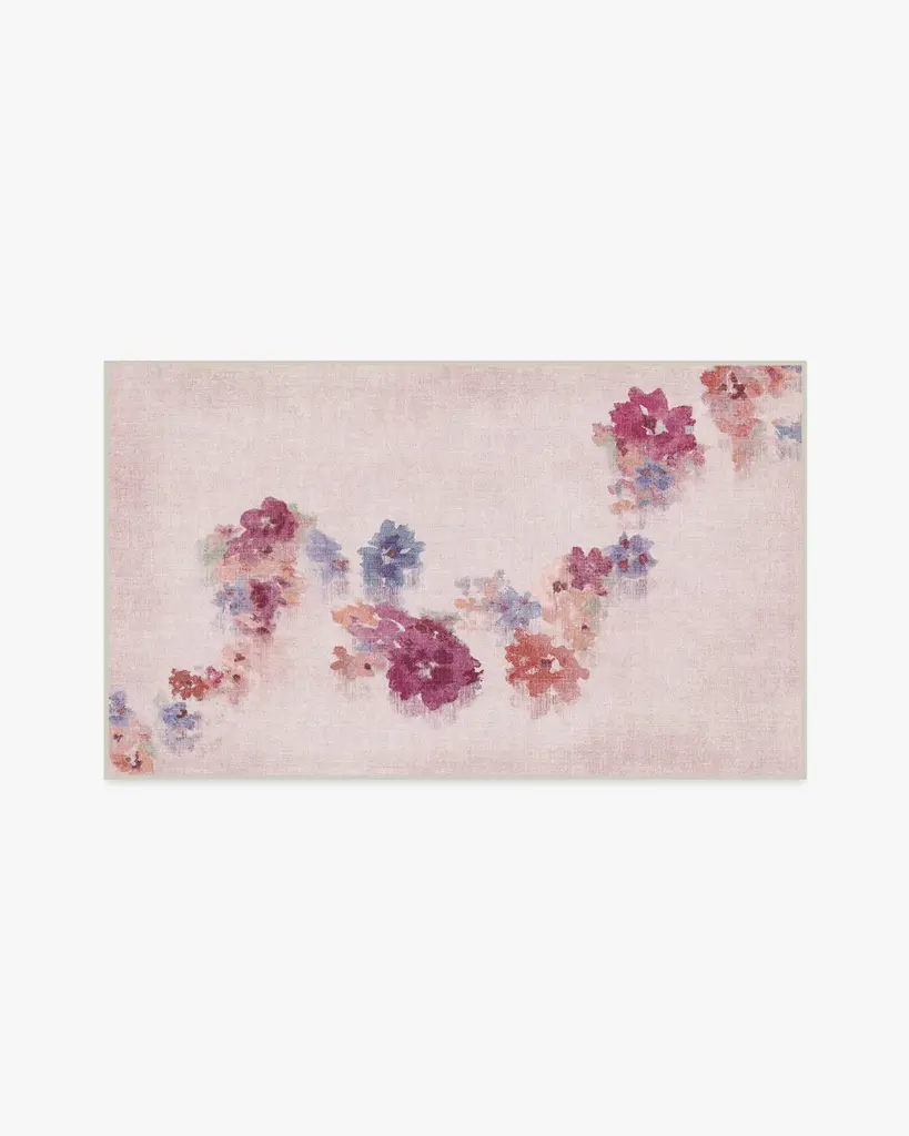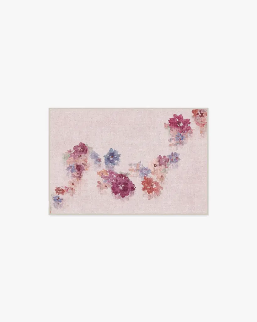 Inspired by the dreamlike beauty of blooming flowers, our Clara Soft Rose Rug design features an impressionistic watercolor effect, where soft floral shapes flow from north to south. The soft mauve pink background is delicately complemented by floral pops of lavender, light coral, and light burgundy. Water-resistant, stain-resistant, and machine-washable. Rug colors may vary slightly according to your device and the lighting in your space.