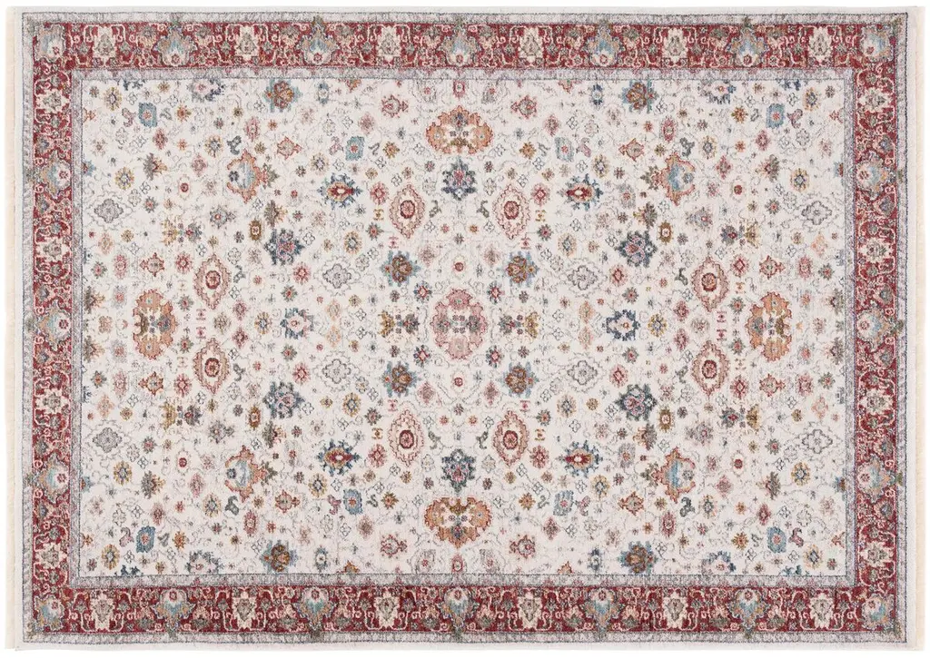 Elevate your living space with this exquisite traditional area rug, crafted with precision in Turkey. Measuring 5 by 8 feet, its medium rectangular shape and 3/8 inch height seamlessly enhance any room. The rich interplay of red and navy hues forms a striking Oriental pattern, bringing a touch of timeless elegance to your home. Expertly power loomed, it combines 65 percent polypropylene, 30 percent cotton, and 5 percent polyester, ensuring a perfect blend of texture and style. This rug not only warms your floor but also adds a layer of sophistication to your decor. Whether under a dining table, in the living room, or gracing your bedroom floor, it offers both beauty and functionality. Embark on a journey of style and tradition with a rug that truly transforms your space.