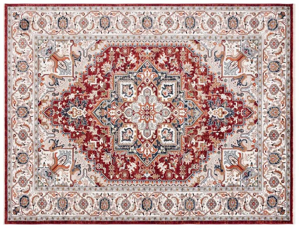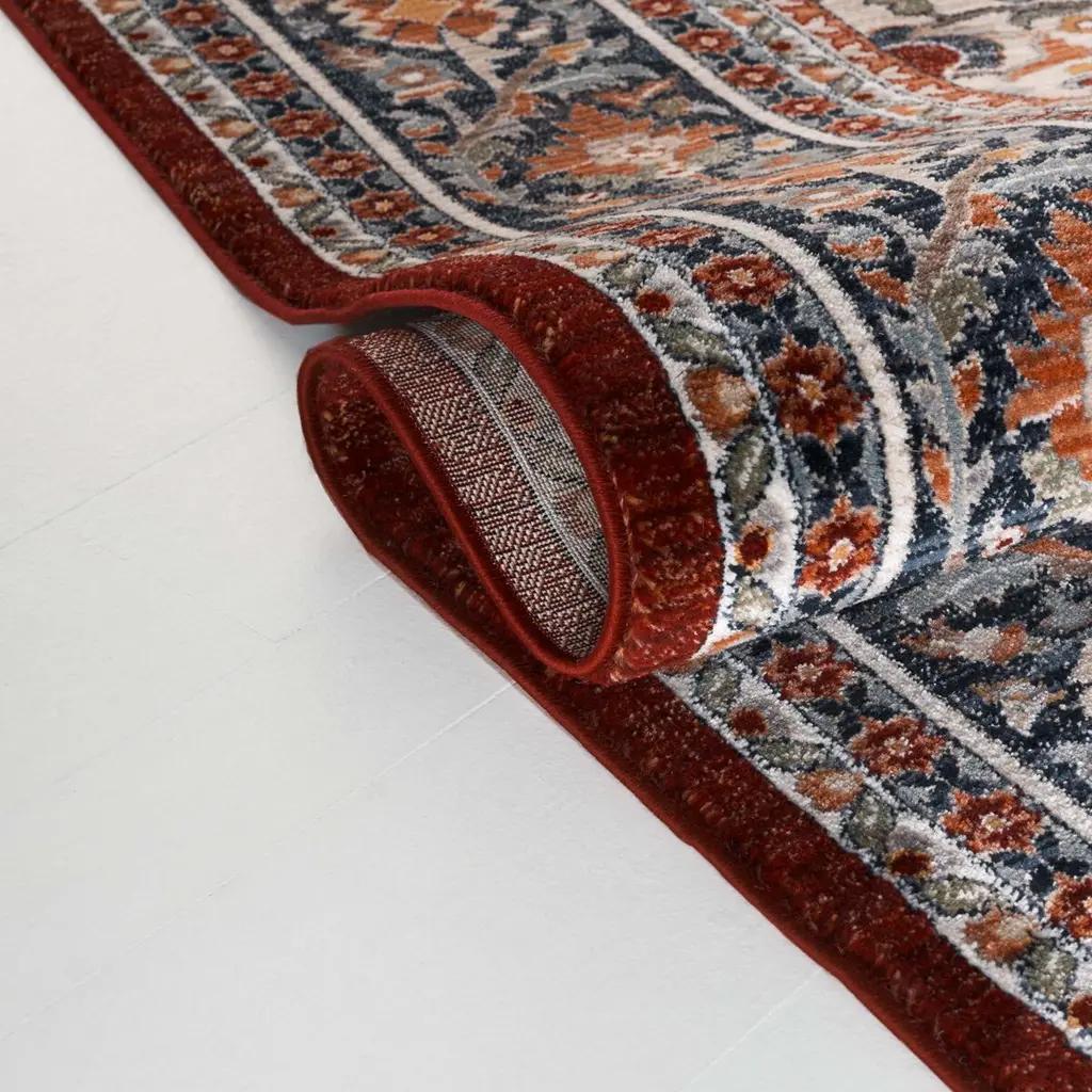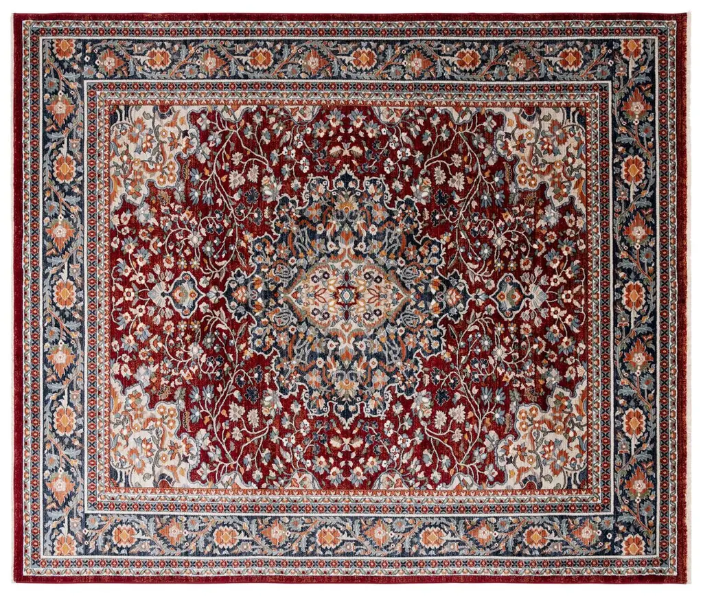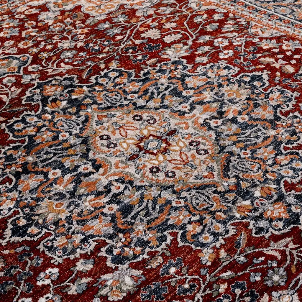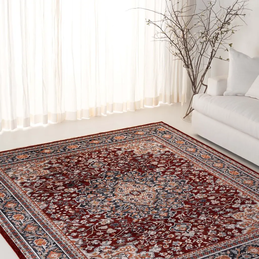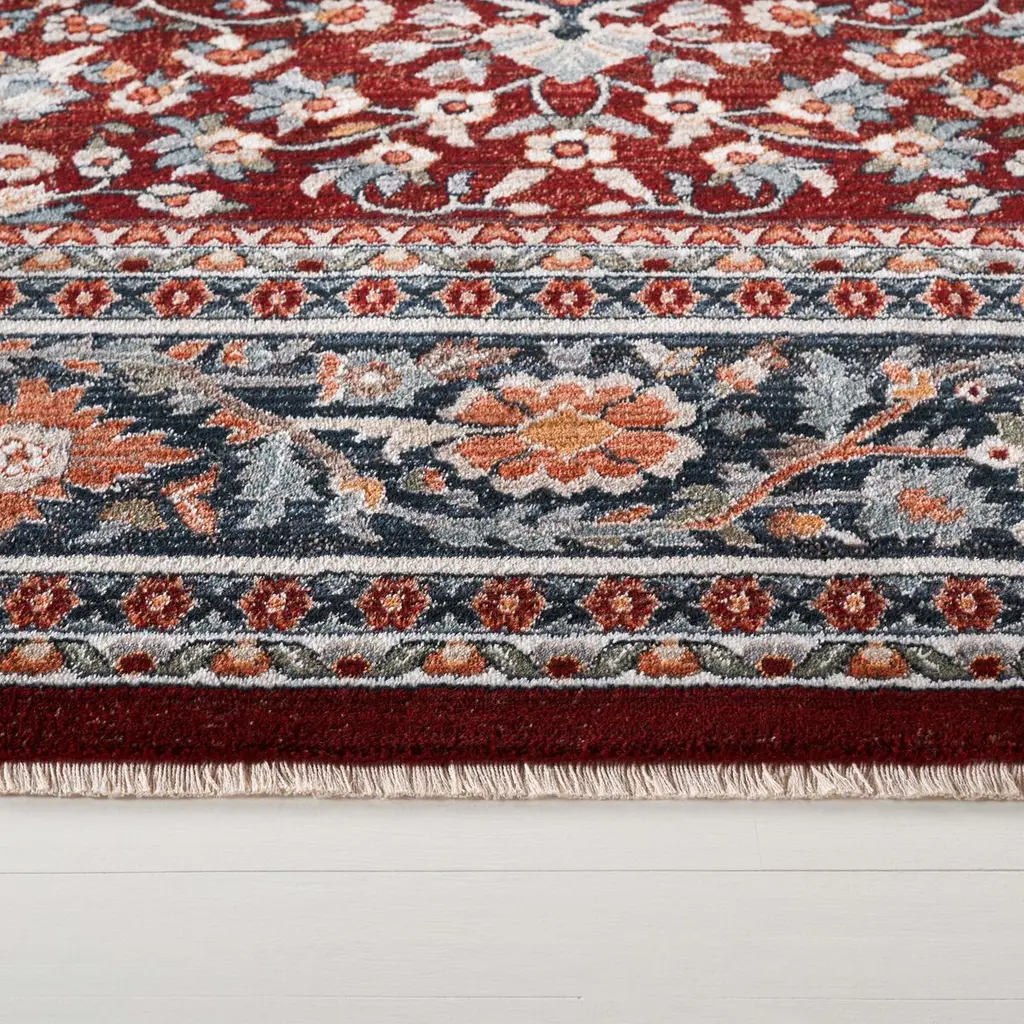 Elevate your living space with this exquisite traditional area rug, crafted with precision in Turkey. Measuring 5 by 8 feet, its medium rectangular shape and 3/8 inch height seamlessly enhance any room. The rich interplay of red and navy hues forms a striking Oriental pattern, bringing a touch of timeless elegance to your home. Expertly power loomed, it combines 65 percent polypropylene, 30 percent cotton, and 5 percent polyester, ensuring a perfect blend of texture and style. This rug not only warms your floor but also adds a layer of sophistication to your decor. Whether under a dining table, in the living room, or gracing your bedroom floor, it offers both beauty and functionality. Embark on a journey of style and tradition with a rug that truly transforms your space.