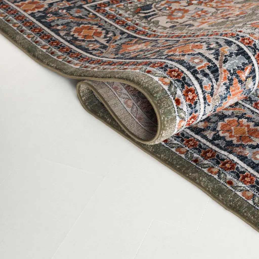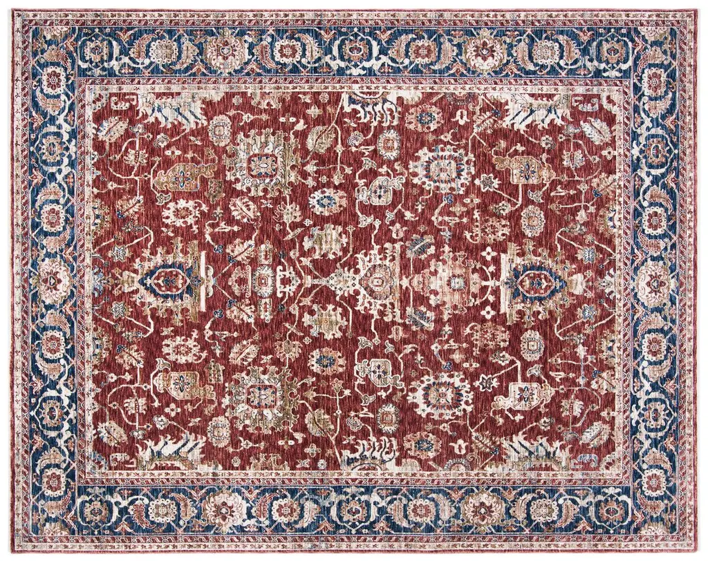 Elevate your living space with this exquisite traditional area rug, crafted with precision in Turkey. Measuring 5 by 8 feet, its medium rectangular shape and 3/8 inch height seamlessly enhance any room. The rich interplay of red and navy hues forms a striking Oriental pattern, bringing a touch of timeless elegance to your home. Expertly power loomed, it combines 65 percent polypropylene, 30 percent cotton, and 5 percent polyester, ensuring a perfect blend of texture and style. This rug not only warms your floor but also adds a layer of sophistication to your decor. Whether under a dining table, in the living room, or gracing your bedroom floor, it offers both beauty and functionality. Embark on a journey of style and tradition with a rug that truly transforms your space.