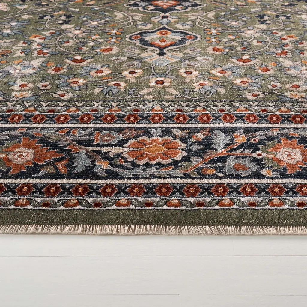 Elevate your living space with this exquisite traditional area rug, crafted with precision in Turkey. Measuring 5 by 8 feet, its medium rectangular shape and 3/8 inch height seamlessly enhance any room. The rich interplay of red and navy hues forms a striking Oriental pattern, bringing a touch of timeless elegance to your home. Expertly power loomed, it combines 65 percent polypropylene, 30 percent cotton, and 5 percent polyester, ensuring a perfect blend of texture and style. This rug not only warms your floor but also adds a layer of sophistication to your decor. Whether under a dining table, in the living room, or gracing your bedroom floor, it offers both beauty and functionality. Embark on a journey of style and tradition with a rug that truly transforms your space.