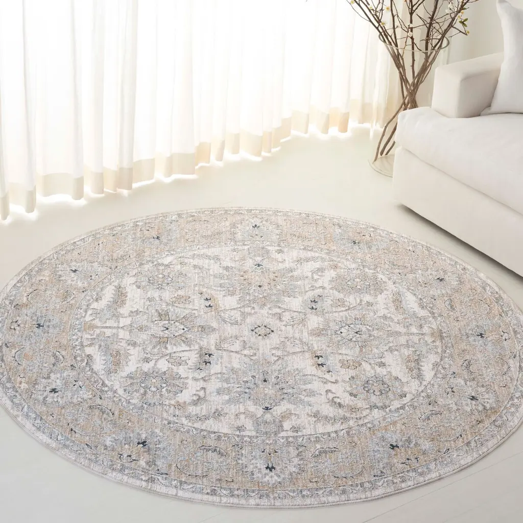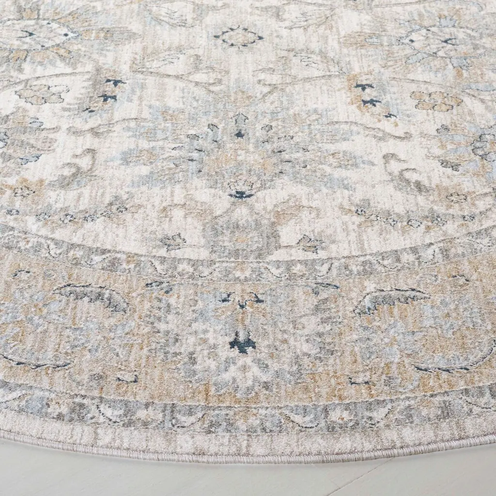 Transform your living space with this exquisite area rug, crafted for those who appreciate beauty and functionality. Measuring 6 feet 7 inches by 6 feet 7 inches, this round rug features a captivating ivory and gold palette that adds a touch of elegance to any room. The 3/8-inch height ensures a smooth and comfortable surface underfoot. With a power loomed weave technique, this rug combines modern craftsmanship with a traditional style, making it a perfect addition to your decor. Made from durable polyester, it boasts an oriental pattern that brings depth and character. Originating from Turkey, this rug is a testament to fine craftsmanship and attention to detail, enhancing your home with its timeless charm.