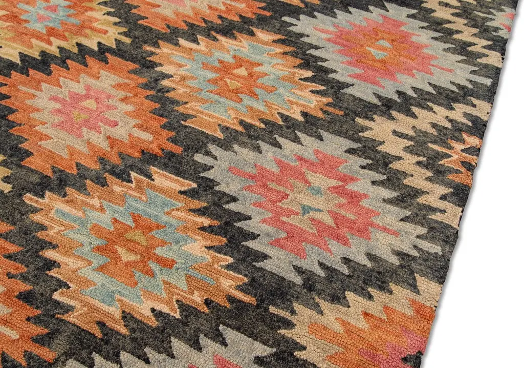 Featuring a dynamic allover design that pops, this rug is crafted of wool, which has been hand-hooked, tip-sheared, and washed to create its rugged, lived-in look. We recommend a rug pad to extend the life of your rug and keep it securely in place.