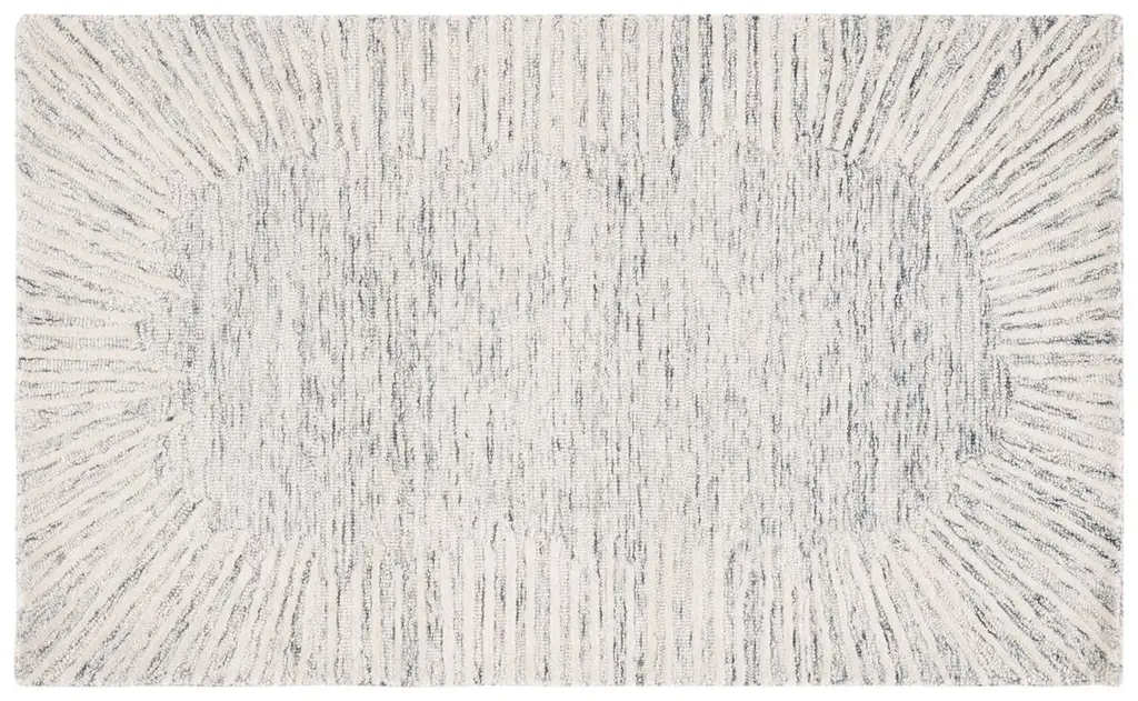 Introducing our exclusive 3' X 5' contemporary area rug, a striking blend of BLACK / IVORY that anchors any room with its sophisticated charm. This small rectangle-shaped rug boasts a hand-tufted construction, meticulously crafted with 85% Wool and 15% Cotton for enduring quality and a comfortable underfoot feel. Fashioned by artisans in India, the rug features a plush 1/2" pile height, offering a luxurious texture that invites you to step into a world of comfort. Its modern design, showcasing dynamic, abstract streaks that create an illustrious radiance, complements a range of interiors, elevating your living space with its artful appearance. While this rug is not washable, its high-quality materials ensure lasting use with proper care. Please note that it is not slip-resistant, so a rug pad is recommended for stability. Transform your home with this hand-tufted masterpiece, designed to impress and endure.