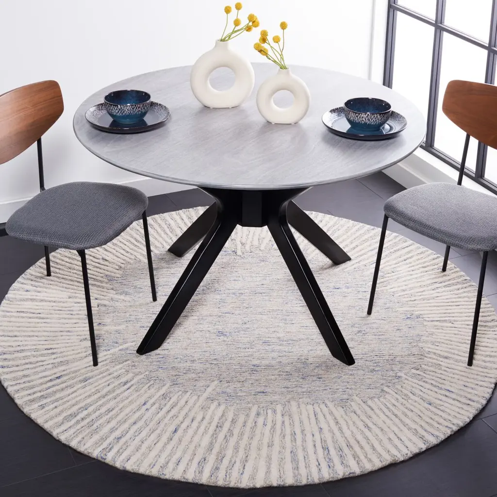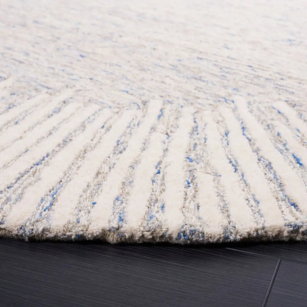 Introducing our exclusive 3' X 5' contemporary area rug, a striking blend of BLACK / IVORY that anchors any room with its sophisticated charm. This small rectangle-shaped rug boasts a hand-tufted construction, meticulously crafted with 85% Wool and 15% Cotton for enduring quality and a comfortable underfoot feel. Fashioned by artisans in India, the rug features a plush 1/2" pile height, offering a luxurious texture that invites you to step into a world of comfort. Its modern design, showcasing dynamic, abstract streaks that create an illustrious radiance, complements a range of interiors, elevating your living space with its artful appearance. While this rug is not washable, its high-quality materials ensure lasting use with proper care. Please note that it is not slip-resistant, so a rug pad is recommended for stability. Transform your home with this hand-tufted masterpiece, designed to impress and endure.