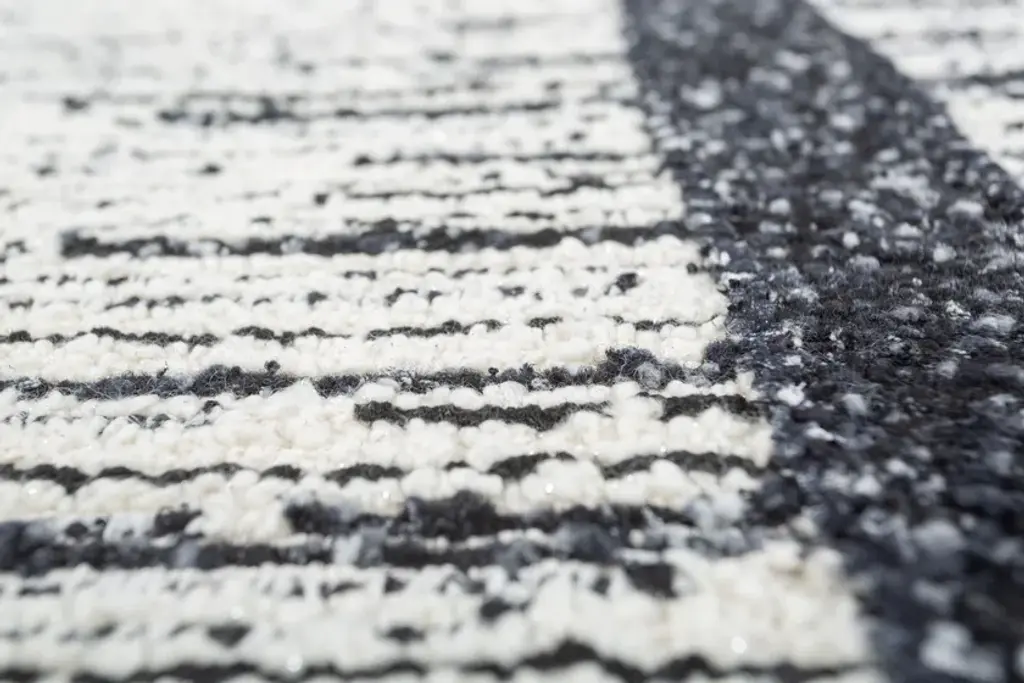 Classic AIAR-3005 is a hand-knotted rug, an extraordinary blend of contemporary design and traditional craftsmanship."In an ethereal Cloud White, this 180x270 cm hand-knotted rug epitomizes elegance with its intricate, flowy geometric pattern framed by prominent borders. Crafted from the luxurious acrylic yarns of Vimar 1991—Chanel's prestigious yarn manufacturer—this masterpiece exudes a couture-inspired refinement. The sartorial charm of these premium yarns is artfully woven by the expert hands of Jaipur Rugs artisans, embodying a seamless blend of heritage and modernity. This rug transcends its function, becoming an iconic statement of exclusivity and grace. Its design evokes the sophisticated allure of high-fashion fabrics, offering a timeless luxury to elevate any space.Composition: 32% Wool, 7% Silk, 17% Cotton, 17% Viscose, and 27% Polyester