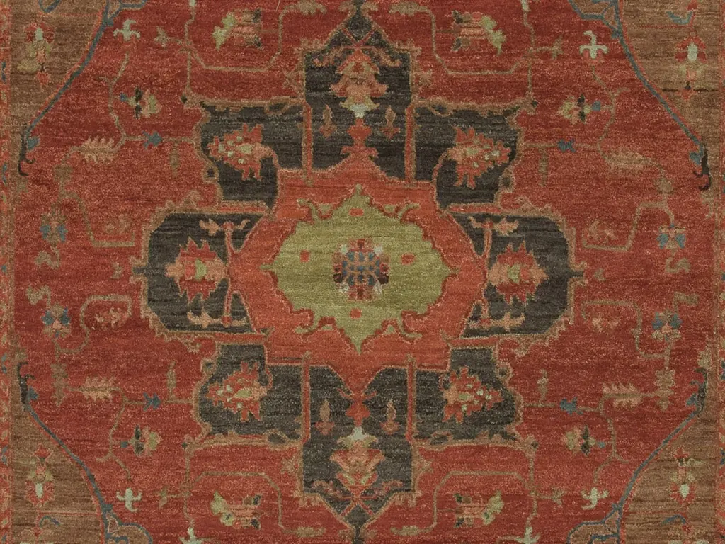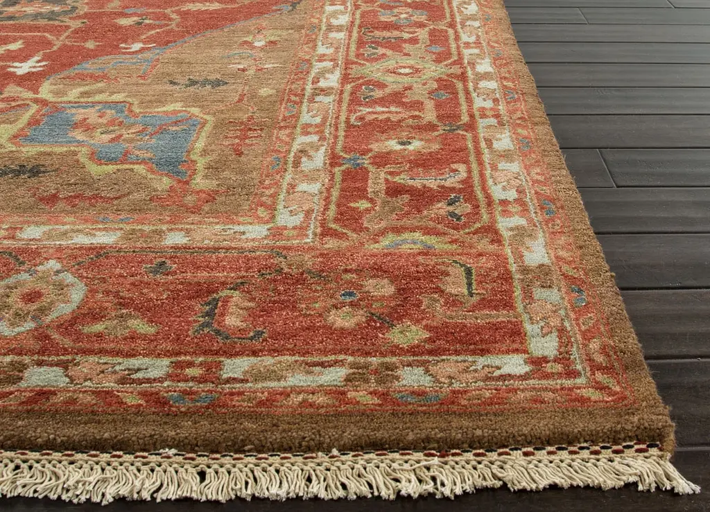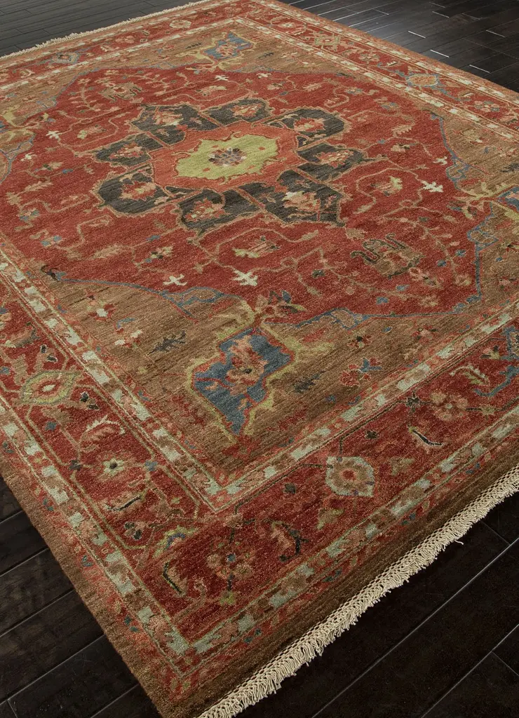 Home fashions veteran Raymond Waites brings his unique design vision to uptown, the most traditional of his man about town series of collections. The rich colorations accent his updated interpretations of familiar motifs in this sophisticated range, crafted in 8/8 hand-knotted construction. Hand-carded wool alters the way that the yarn takes the dyeing process, giving each piece a beautiful abrash effect and a soft hand.
