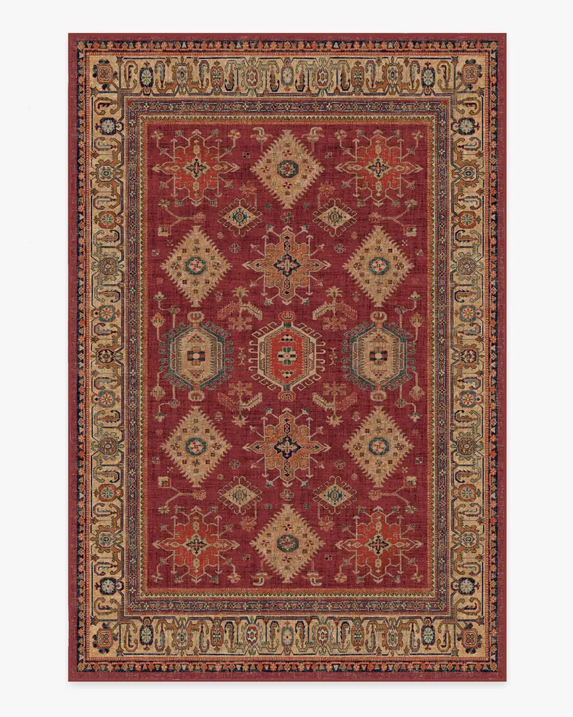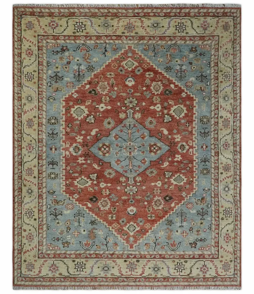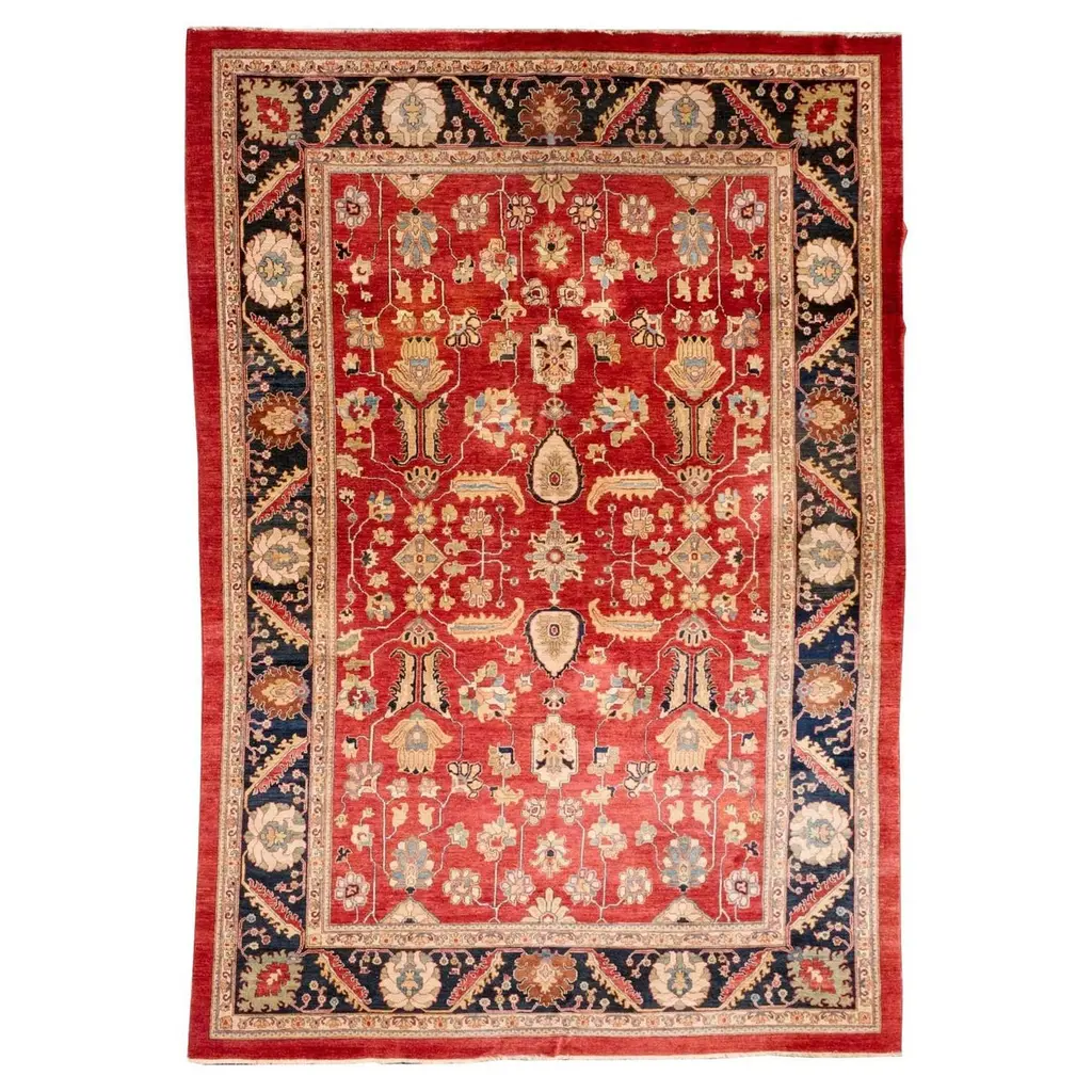 Classic Oriental Scarlet/blue Wool Area Rug- Naomi