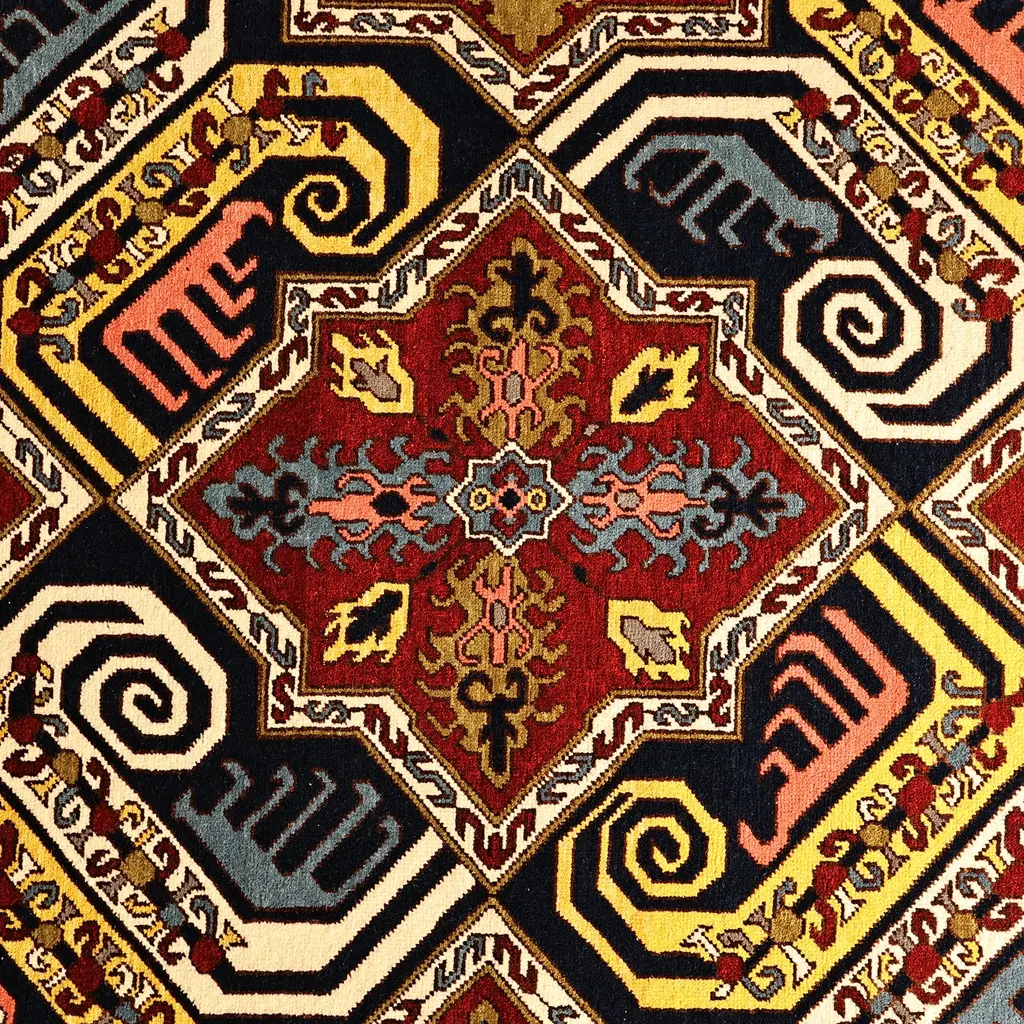 The grandeur of the ancient Armenian kingdom awakens in this Vishapagorg rug by the Artsakh Carpet Association. The team takes inspiration from classic pieces to create the rug's intricate pattern, made of wool threads woven with the traditional knotting technique. A palette of red, blue and yellow hues merges in every motif, allowing a regal look.