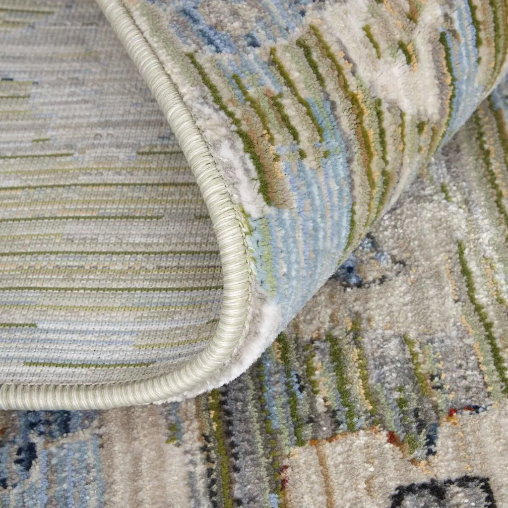 The Claymore Collection presents an area rug steeped in Turkish tradition, marrying resilience with a tactile, shimmering surface. A composition of polypropylene and polyester ensures it stands up to stains and spills, while the floral design in tranquil blues and warm taupes graces your floors with sophistication. This transitional decor rug introduces a touch of everyday luxury and simplicity to your home maintenance routine.
