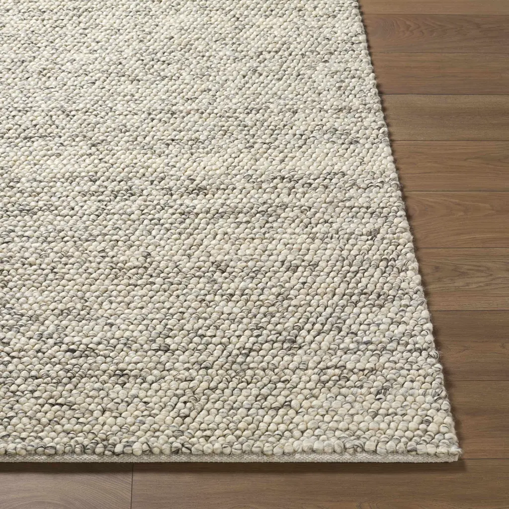 Collection: Clayne Colors: Beige, Charcoal Construction: Hand Woven Material: 100% Wool Pile: Medium Pile Pile Height: 0.3" Styles: Transitional,Bohemian Made In: India Thickness: 0.5" Price Range: $$$$$ (Affordable)