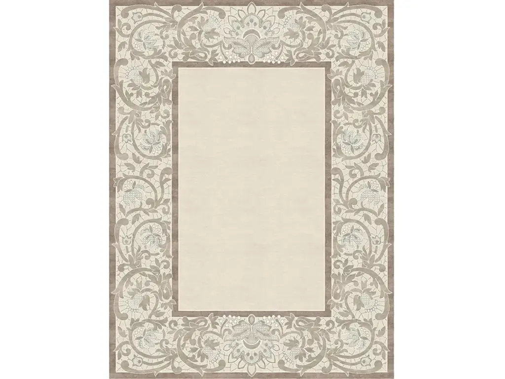 Material: Wool, SilkKnot Density: 100 knots/inch²Pile Height: 4-6mmTechnique: Hand-knottedCustom sizes and colors on requestThe Dentelle collection adapts the traditional Richelieu lace patterns into delicate and refined rugs of exceptional quality. The Richelieu lace design in the borders or at the center of the rug composition is inspired by intricate embroidery works and fabrics from the 17th century. The different mix of wool and silk in various color combinations and floral motifs transform an unusual use of a classic ornament into a fresh and contemporary decorative element.The Clementine Terrestre hand-knotted rug composition contains 60% wool and 40% silk. A 100 knots/inch² knot density and a 4 to 6 mm pile height emphasize the drawing details. The rug is available in four sizes or custom-made.
