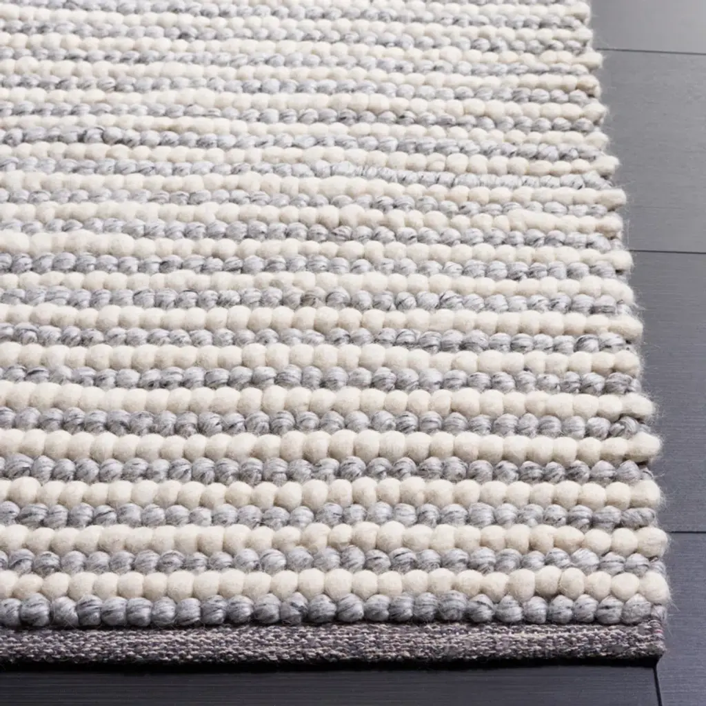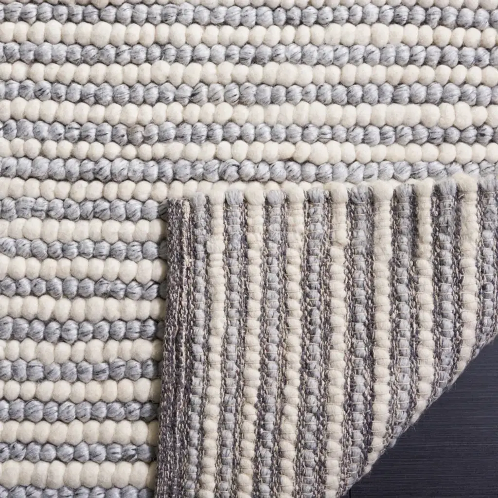 This indoor area rug provides extra texture and padding underfoot thanks to its distinctively modern pattern. Ivory and gray nubs are arranged as stripes for a muted colorway that works with a variety of styles and palettes. Handwoven from wool and cotton, this rug's high 0.79" pile height makes it ideal for low-traffic areas like your home office or bedroom. It's even safe to roll out over heated floors. Even though it has a backing, we recommend pairing it with a rug pad (sold separately) to keep it from slipping and sliding around.