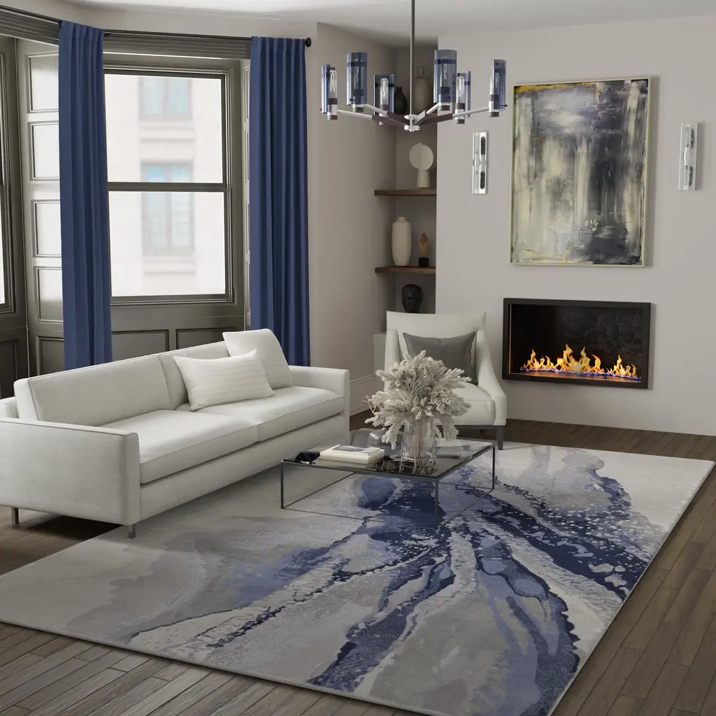 Clio Modern Abstract - Blue/gray/ivory Area Rug - 10' X 13'2" Rectangle