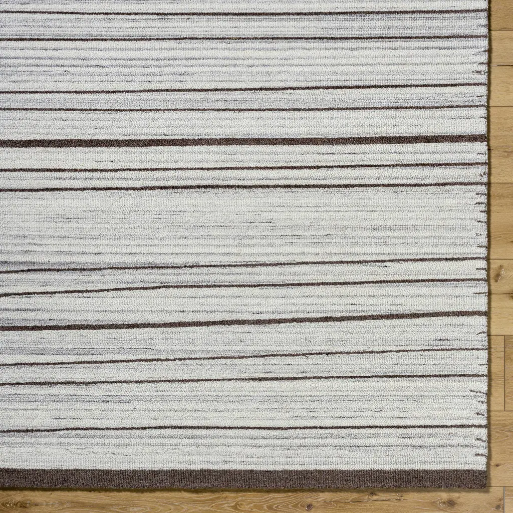 Collection: Cliona Colors: Ivory, Taupe, Charcoal Construction: Hand Tufted Material: 100% Wool Pile: Medium Pile Pile Height: 0.4" Styles: Transitional,Traditional Backing: Canvas Made In: India Thickness: 0.6" Price Range: $$$$$ (Affordable)