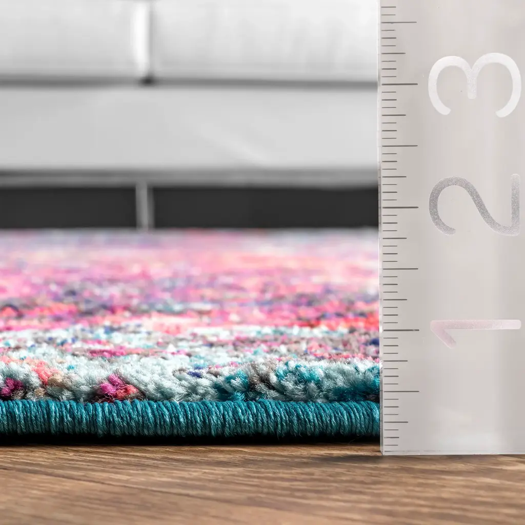 Bring a splash of vibrance and contrasting colors to your living space with the 100% polypropylene machine-made bohemian rug that is available to you in a variety of sizes. The intricate traditional pattern of this beautiful rug is sure to catch everyone's attention. Each corner of this beautifully designed floor covering features something else that will captivate anyone who sees it. Designed to enhance any room it's placed in, this pet-friendly and easy to clean area rug comes in an assortment of sizes.