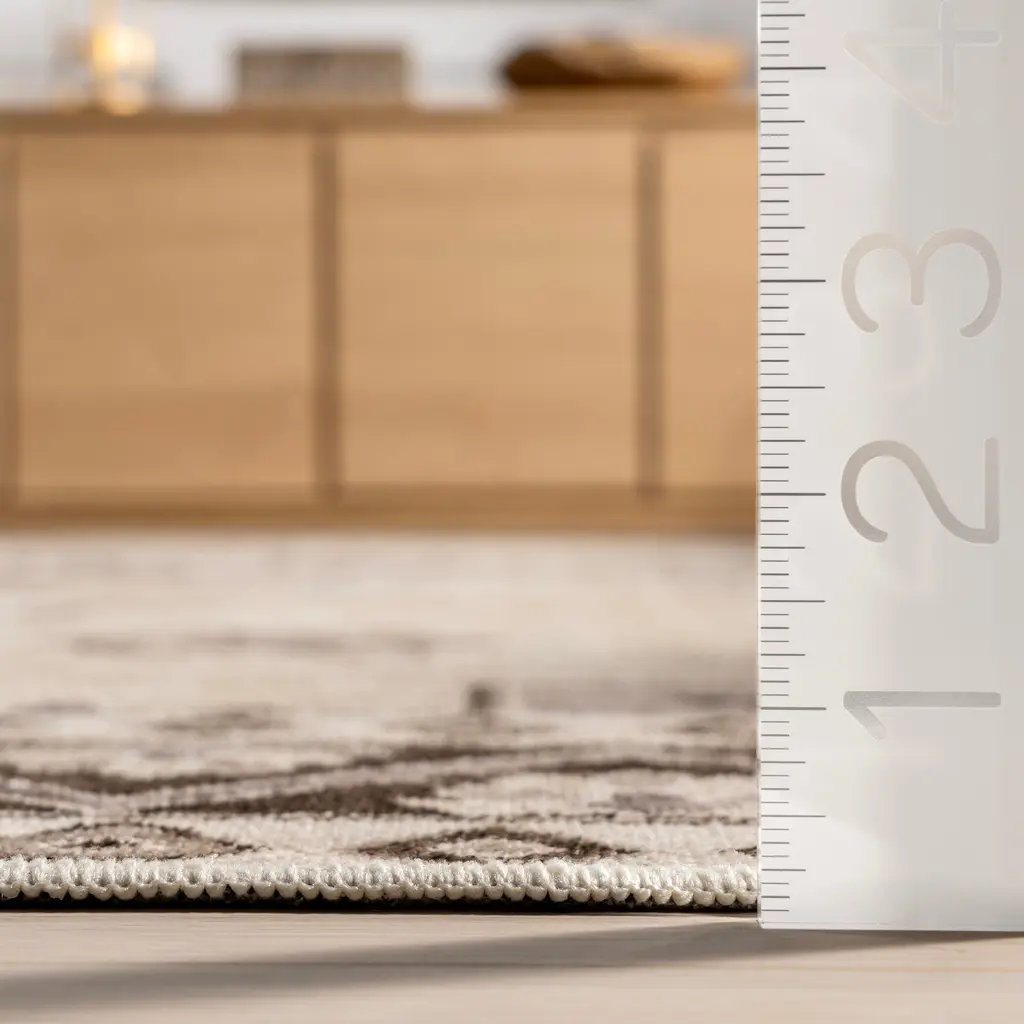 Clovebud Geometric Machine Washable Area Rug - 4' X 6' - Beige - Rectangle