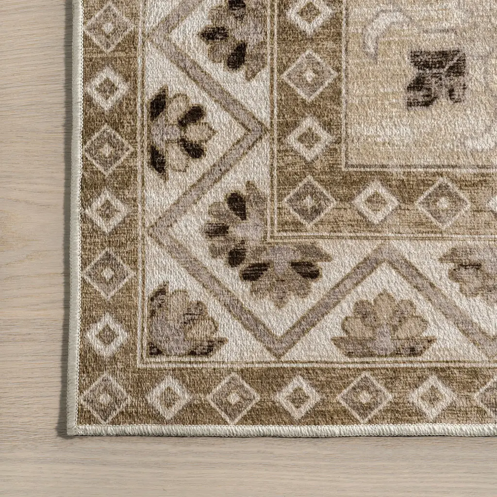 Clovebud Medallion Washable Rug | Brown - 4' X 6'