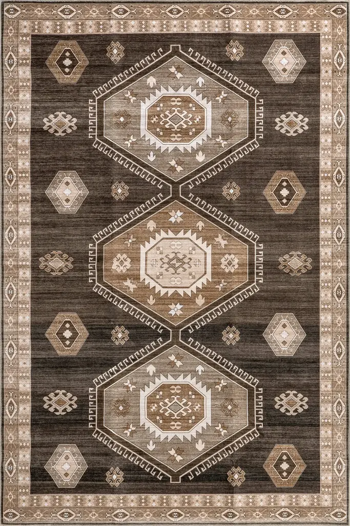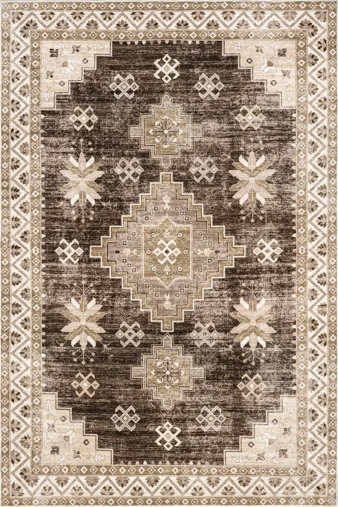 Clovebud Medallion Washable Rug | Brown - 5' X 8'