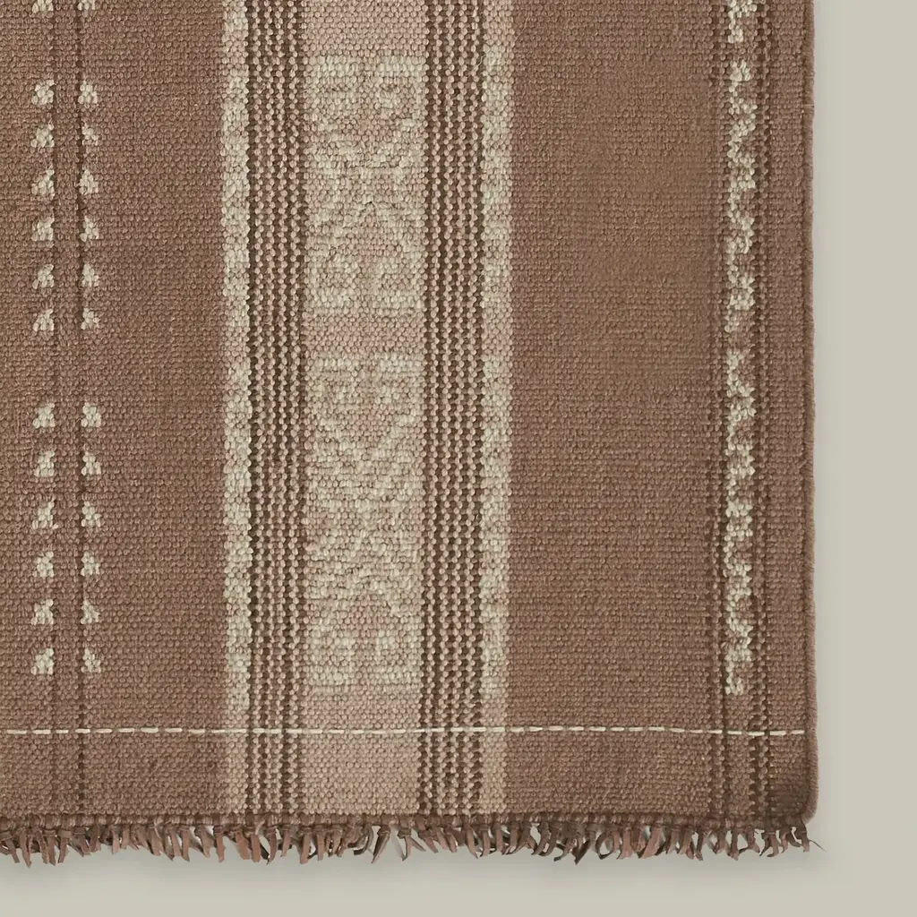 The Cluny Collection offers a mixture of influence from Southwest Native American and Indonesian textiles, utilizing traditional Ikat designs among other decorative tribal layouts. Hand-woven in wool fibers with rich leather accents and fringe detailing, these rugs honor historical techniques that take you back to another place and time. The muted and neutral colors that run throughout bring a unique, antique-like element to any space.