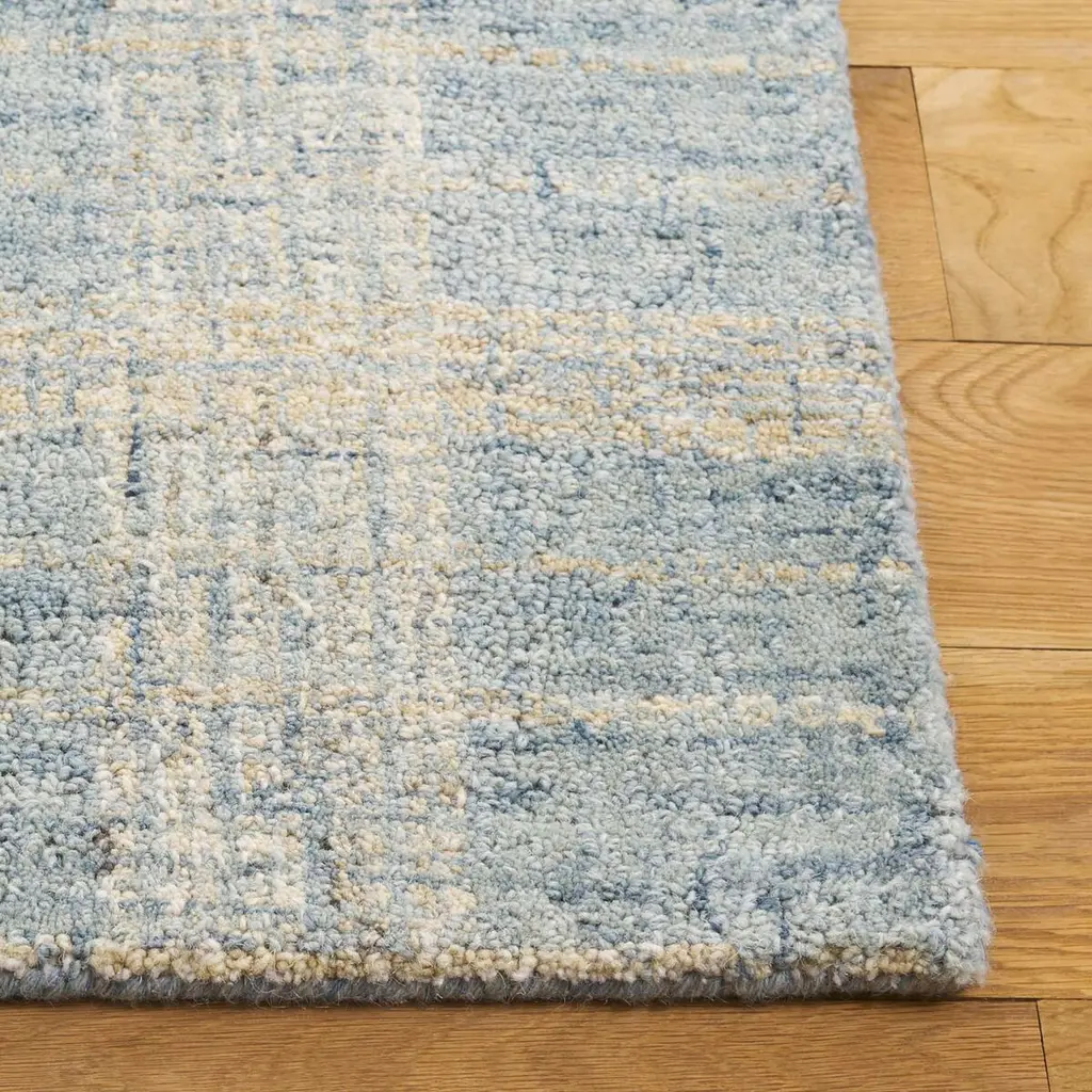 Elevate your living space with our exquisite hand-tufted area rug, meticulously crafted in the serene hues of blue and ivory. This small rectangle rug, measuring a versatile 4 feet by 6 feet with a comfortable pile height of 3/8 inches, is the epitome of artisanal charm and tactile pleasure. Constructed from a luxurious blend of 80% wool and 20% cotton, the rug promises durability and softness, appealing to both the eyes and the feet. The blend of premium materials ensures a natural resilience and a sumptuous feel, ideal for both high-traffic areas and intimate spaces. The rug's pattern exudes a subtle sophistication with its understated grid-like design that captures a contemporary aesthetic while maintaining a timeless appeal. Each stroke and weave hails from India, a testament to its exceptional craftsmanship and the rich heritage of traditional rug making. Make a statement in your home or office with this beautifully designed piece that balances comfort with elegance, making it a perfect addition to any interior decor.