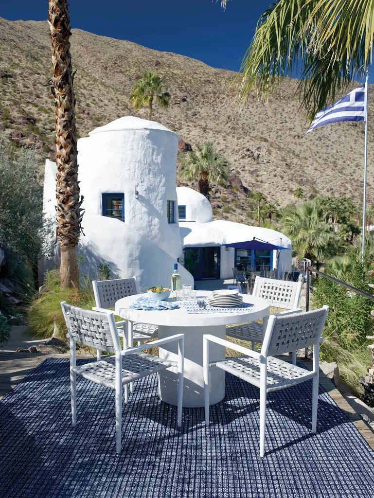 Inspired by a colorful knit throw, this indoor/outdoor rug is durable and washable. It features a unique texture produced by a mix of varying shades of blue and ivory yarns that peek through from under a navy checkerboard pattern. Use it to create a cozy feel in high-traffic areas without having to worry about cleanup!