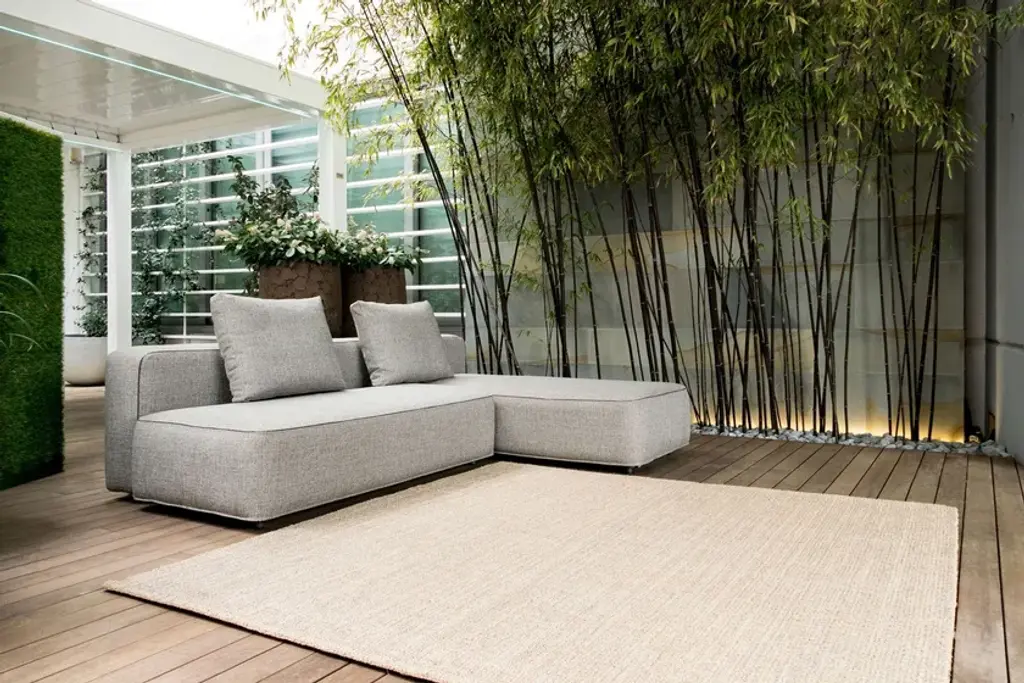 Coconutrug Terra Fresca collection: Coconutrug has been an independent brand since 1998. Its creations blend the energy of nature, a new functional approach and an intensive tactile sensitivity, concepts that have always been key features in the research by G.T.DESIGN. Created using top quality coconut fiber, Coconutrug Terra Fresca is irreplaceable when a filter is required to protect the floor, in areas subjected to heavy footfall, in homes with pets, holiday homes, at the seaside or in the mountains. The coconut fiber is embellished with a luminous fiber in neutral hues.Material: high quality coir fibre and polyester - Structure: hand woven on traditional looms - Thickness: 9 mm