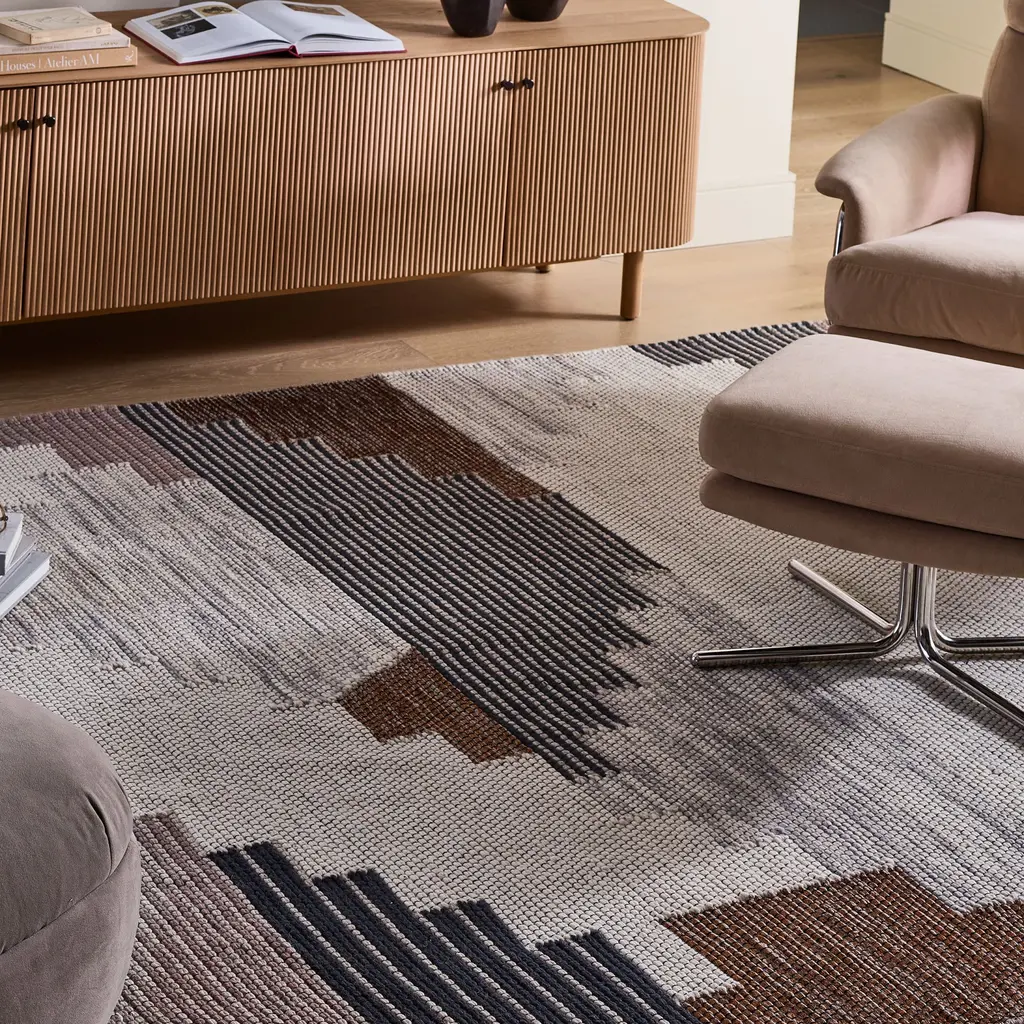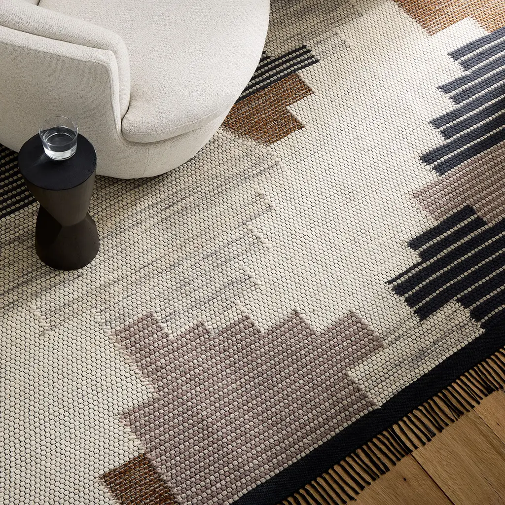 Designed with a beautiful geometric pattern. Earthy colors and texture ground your space. Metallic gold fibers for a hint of shimmer. Handwoven in a Fair Trade Certified™ facility.