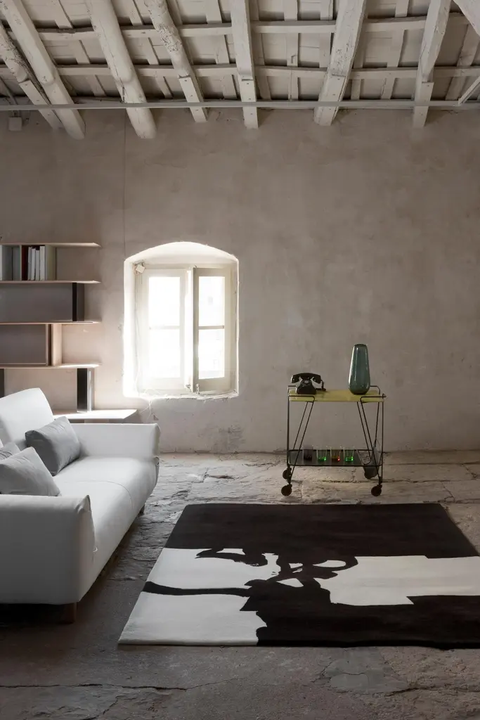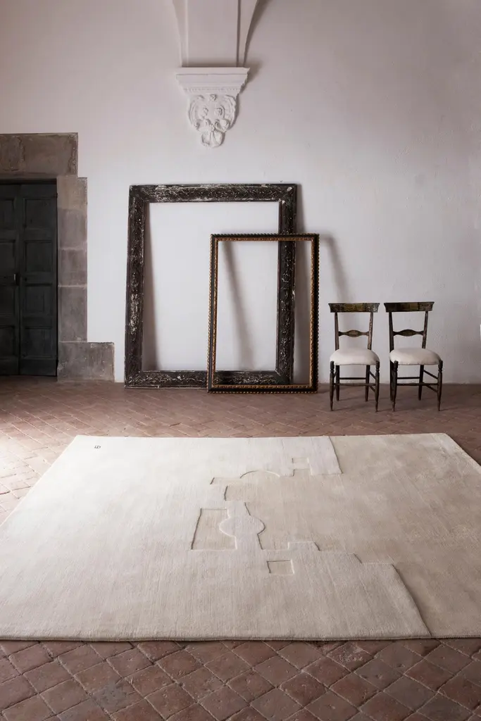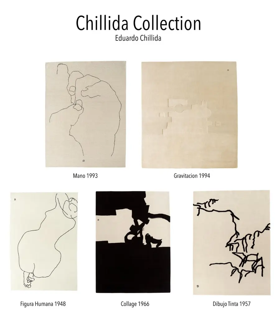 'Collage 1966' rug by Eduardo Chillida for Nanimarquina. Born in 1924, Eduardo Chillida was a celebrated and prolific Spanish sculptor. He began his life work in Paris, but it was not until he moved back to Spain that he began experimenting with iron, crafting monumental abstract sculptures. His iconic work has been featured in countless exhibitions and is still on display in over 20 museums across the world today.Nanimarquina has faithfully translated Chillida’s artistic nuances into rugs, all handmade using various techniques and fibres, such as wool, silk, and hand-spun mohair, to create different textures, showcasing the essence of his work. 'Collage 1966' is expertly executed in 100% hand-tufted New Zealand wool.Price is per item. Available in unlimited quantities. Custom sizing available upon request for an additional fee and with extended lead times possible. Standard in-stock lead time 2-3 weeks. Out of stock or custom sizing can add additional 12 weeks or more. Inventory availability is subject to change at any time. Made to order. All sales are final.Please note that due to the organic and handmade nature of this fiber some variation in color may occur from piece to piece, which may become further pronounced with prolonged exposure to sunlight.Also note this item must ship directly from Nanimarquina’s fulfillment center, so 1st Dibs arranged shipping and local pick-up are not an option. Shipping cost quoted is per item and cannot be combined.