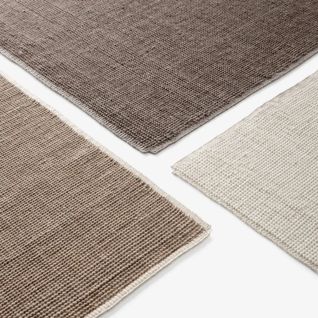 The Collect Rugs are meticulously hand-woven by skilled artisans in Bikaner, India, using a combination of undyed New Zealand wool and polyester. These rugs are part of a collection designed by Space Copenhagen and are celebrated for their understated elegance, available in three muted tones: Milk, Camel, and Stone. Each rug is flat-woven on a handloom by 2-3 weavers, a process that takes about a day to complete, ensuring both durability and a soft, warm texture.