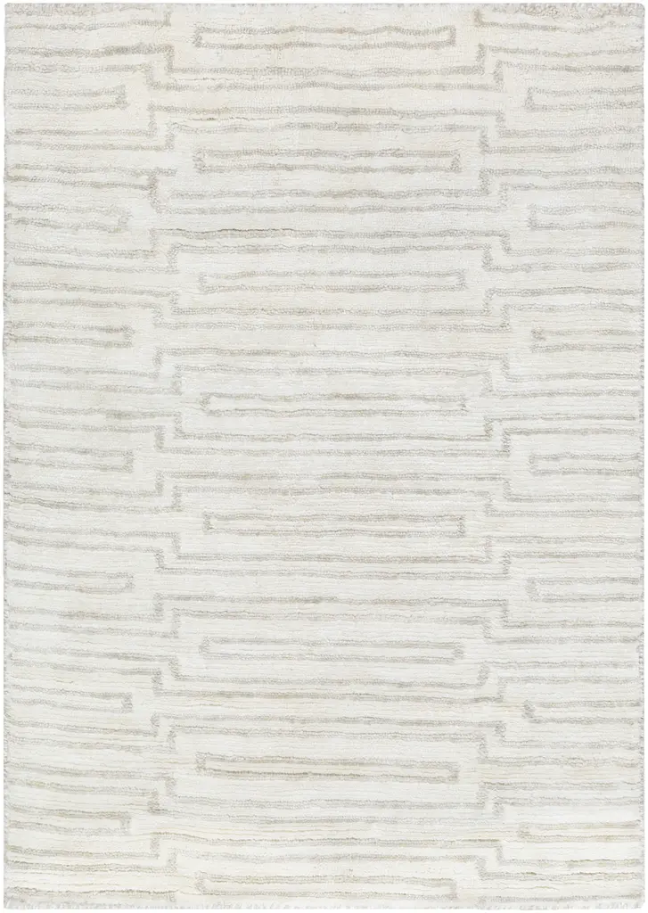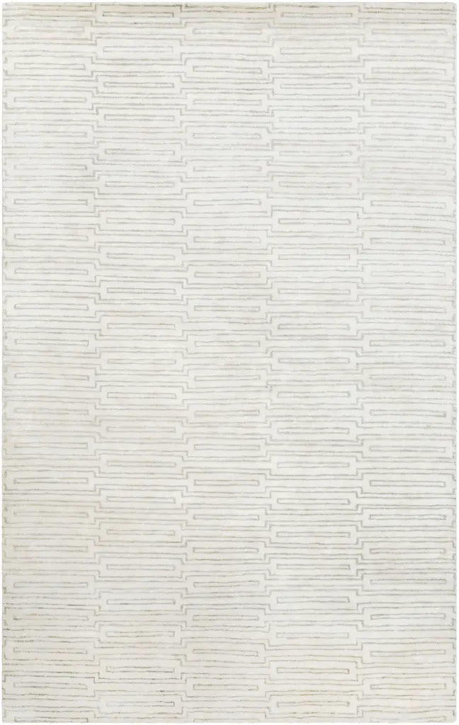 Collection: Colona Colors: Pale Blue, Dark Red Construction: Hand Knotted Material: 100% Viscose Pile: Medium Pile Pile Height: 0.31" Styles: Contemporary Made In: India Thickness: 0.39" Price Range: $$$$$ (Premium)