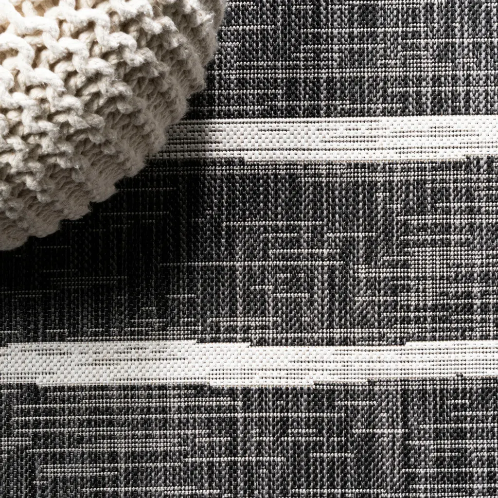 Colonia Berber Stripe Indoor/outdoor Rug, Black/ivory, 2X10