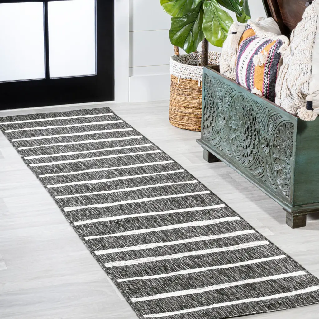 Inspired by Berber rugs, our modern striped rug has a soft, low pile. The scattered stripe pattern recalls the tribal rug designs made popular by mid-century design. With its easy-care fibers, this versatile rug is ideal for a living room, dining room, entry or bedroom.Features:• Power loomed with a 0.19" pile that''s soft and durable• The woven soft black and ivory color scheme brings a modern touch to this timeless rug• Made from easy-care polypropylene - just sweep, vacuum or hose down with mild soap and water• 100% Polypropylene• No backing, use of rug pad is recommended (sold separately)• Power Loomed in Turkey• Actual Dimension: 2 ft. 2 in. X 10 ft.• Color: Black/Ivory• Thickness measures: 0.19 in.• Available in multiple sizes and/or colorsRug Care:• Vacuum regularly and spot clean as needed; avoid direct and continuous exposure to sunlight; use brushless vacuum; remove spills immediately; if liquid, blot with clean, undyed cloth by pressing firmly around the spill to absorb as much as possible; for hard to remove stains, professional rug cleaning is recommended; store in a dry, well ventilated area and rotate for consistent wear• Packing and shipping may cause temporary creases in rugs, which will flatten out after a week on the floor; to expedite the process, try back-rolling your rug before laying it down, and then allow ample time for the remaining creases to relax• Please Note: Due to differences in monitors, some rug colors may vary slightly. Lengths and widths may vary from the published dimensions. Patterns may vary slightly according to shape and size selected.About us:Style your floors with JONATHAN Y. By combining fine craftsmanship and design, this New York creative studio is bringing fashion to your floors. The collection mixes sustainable organic materials, vibrant colors and trend worthy styles to create JONATHAN Y''s distinctive catalog of rugs.