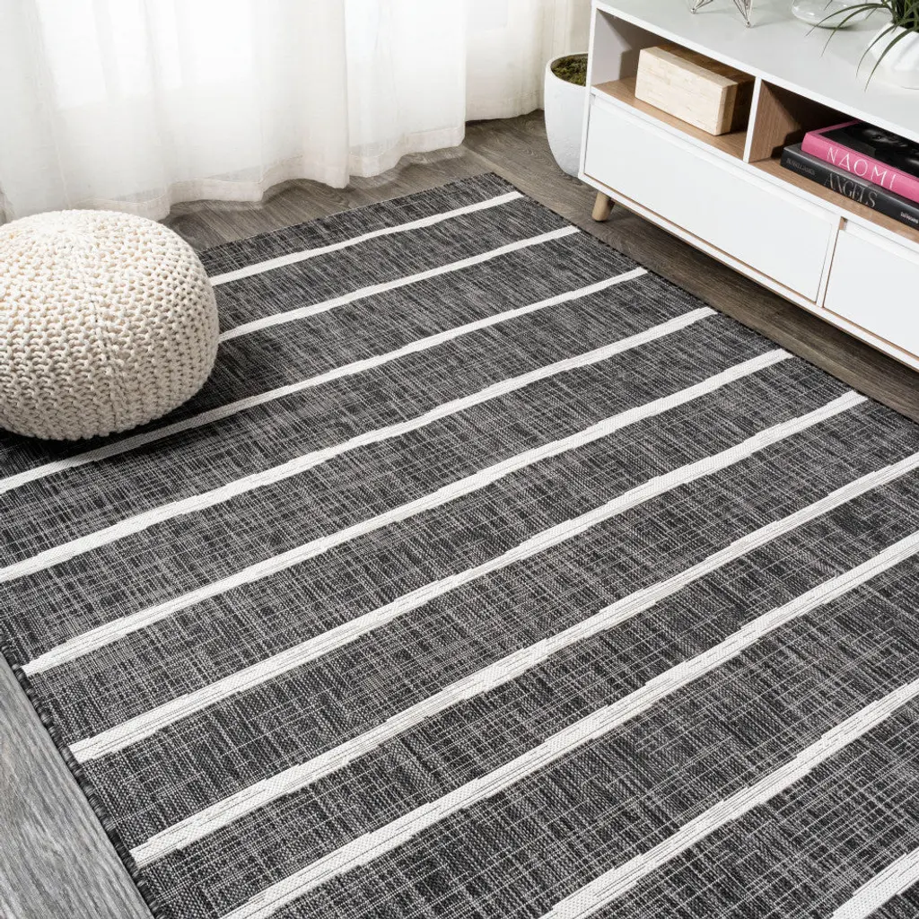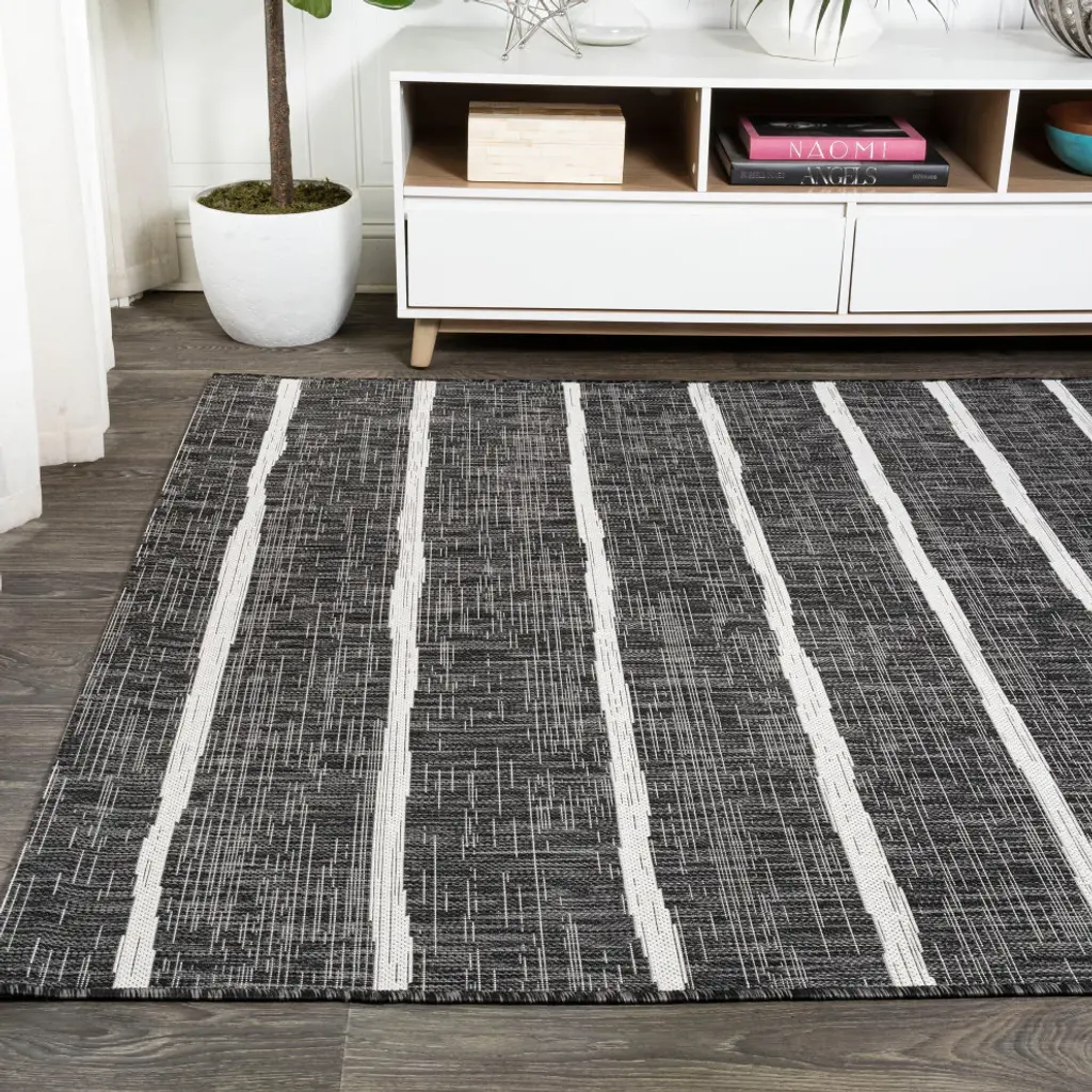 Colonia Berber Stripe Indoor/outdoor Rug, Black/ivory, 3'x5'
