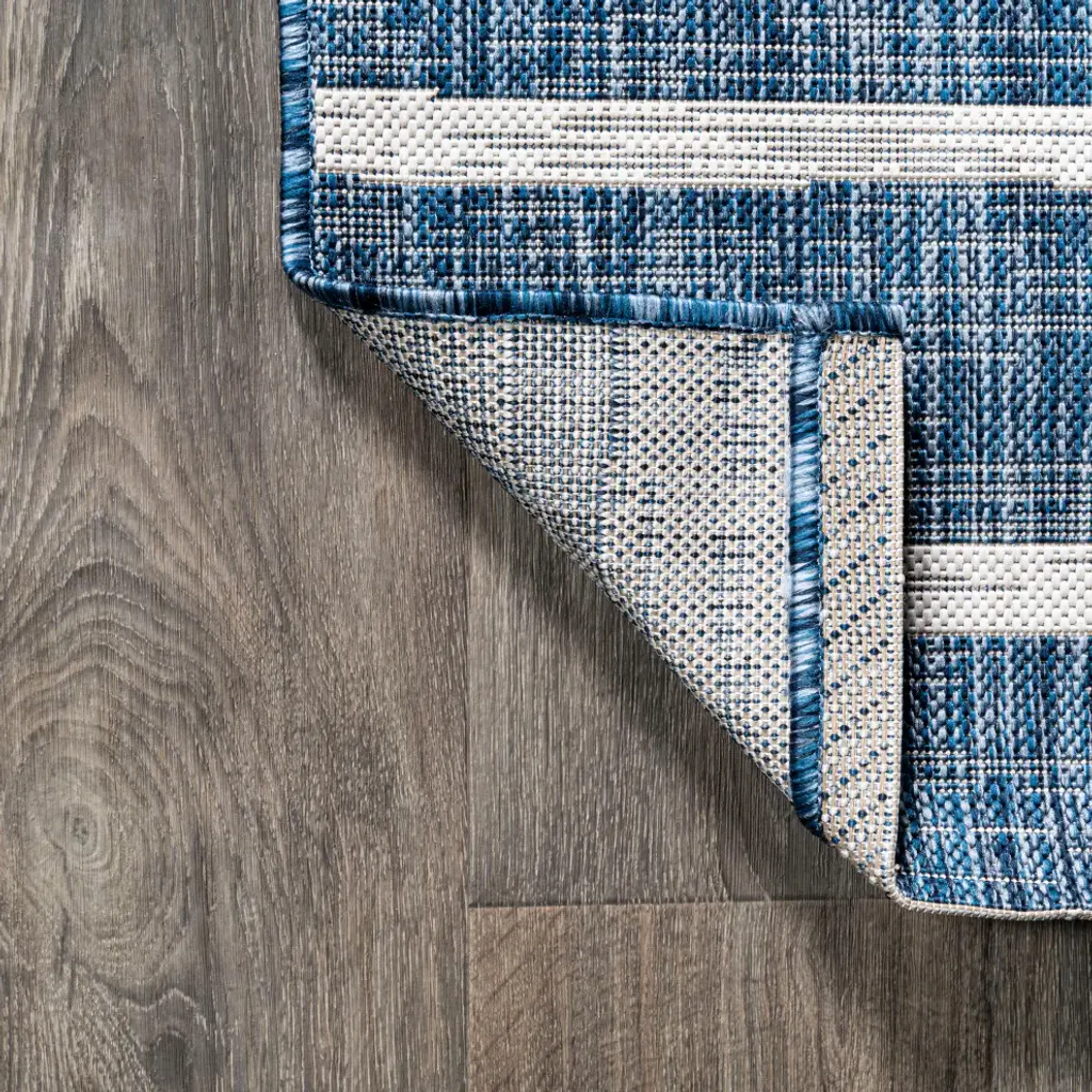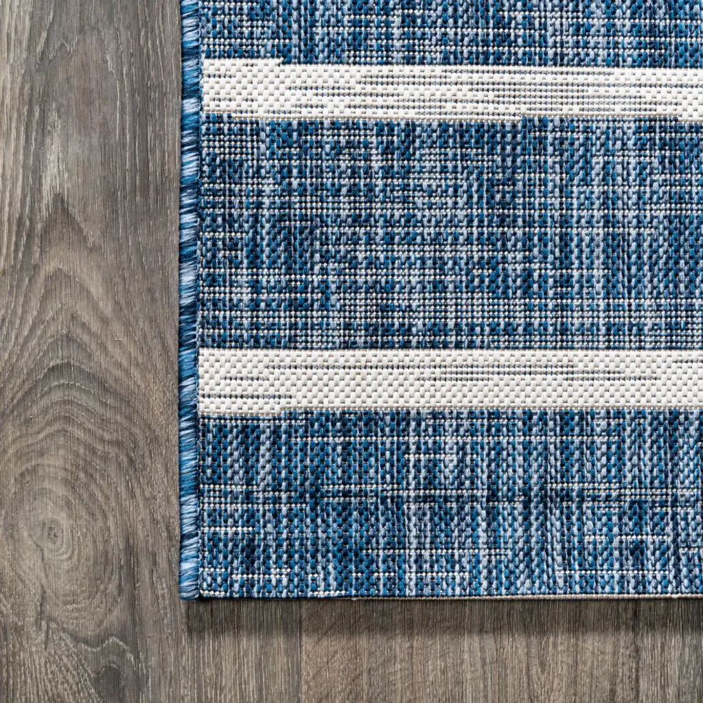Colonia Berber Stripe Indoor/outdoor Rug, Blue/ivory, 2'2"x8'