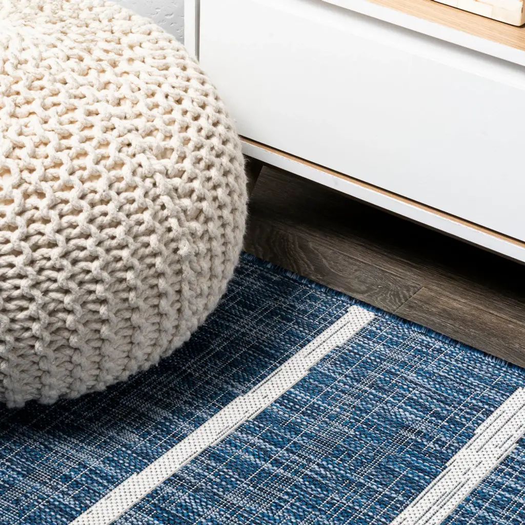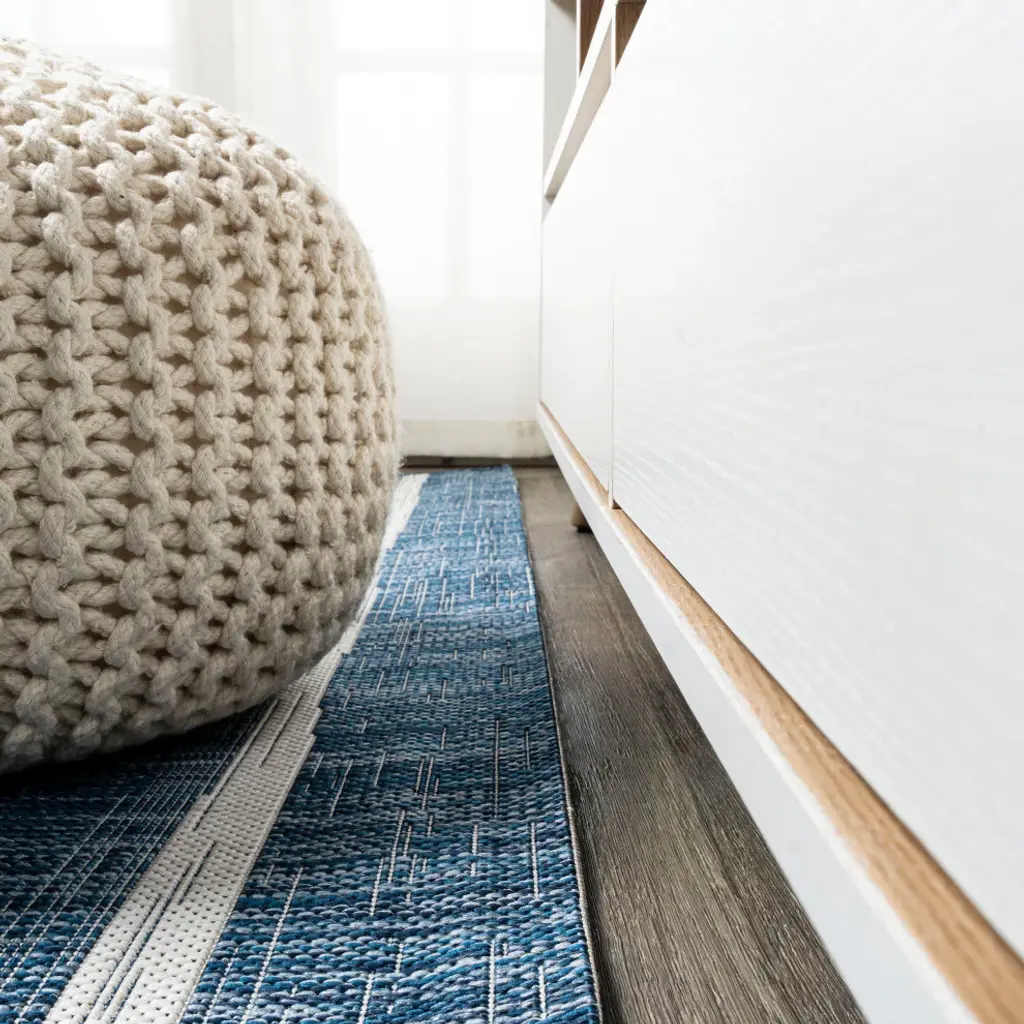 Inspired by Berber rugs, our modern striped rug has a soft, low pile. The scattered stripe pattern recalls the tribal rug designs made popular by mid-century design. With its easy-care fibers, this versatile rug is ideal for a living room, dining room, entry or bedroom.Features:• Power loomed with a 0.19" pile that''s soft and durable• The woven blue and ivory color scheme brings a coastal touch to this timeless rug• Made from easy-care polypropylene - just sweep, vacuum or hose down with mild soap and water• 100% Polypropylene• No backing, use of rug pad is recommended (sold separately)• Power Loomed in Turkey• Actual Dimension: 2 ft. 2 in. x 8 ft.• Color: Blue/Ivory• Thickness measures: 0.19 in.• Available in multiple sizes and/or colorsRug Care:• Vacuum regularly and spot clean as needed; avoid direct and continuous exposure to sunlight; use brushless vacuum; remove spills immediately; if liquid, blot with clean, undyed cloth by pressing firmly around the spill to absorb as much as possible; for hard to remove stains, professional rug cleaning is recommended; store in a dry, well ventilated area and rotate for consistent wear• Packing and shipping may cause temporary creases in rugs, which will flatten out after a week on the floor; to expedite the process, try back-rolling your rug before laying it down, and then allow ample time for the remaining creases to relax• Please Note: Due to differences in monitors, some rug colors may vary slightly. Lengths and widths may vary from the published dimensions. Patterns may vary slightly according to shape and size selected.About us:Style your floors with JONATHAN Y. By combining fine craftsmanship and design, this New York creative studio is bringing fashion to your floors. The collection mixes sustainable organic materials, vibrant colors and trend worthy styles to create JONATHAN Y''s distinctive catalog of rugs.