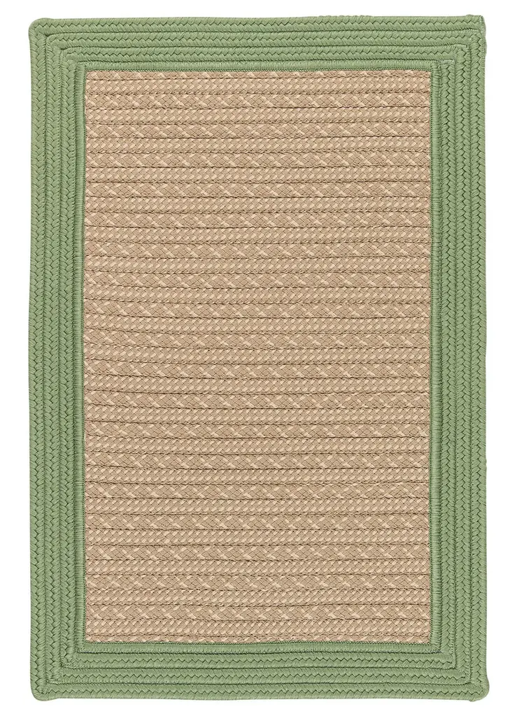 Textured all weather rugs are ideal for outdoor spaces, as well as indoor high traffic areas. A subtle blend of natural tones creates texture and interest in this bordered rug, while it's solid border adds a classic appeal.Collection: Bayswater BY63Primary Color: Moss GreenColor Families: Moss Green, BeigeCategories: Braided, Bordered, Indoor/OutdoorFeature: Stain, Fade & Mildew ResistantMaterial: 100% PolypropyleneReversible: YesPile Height: 0.5''