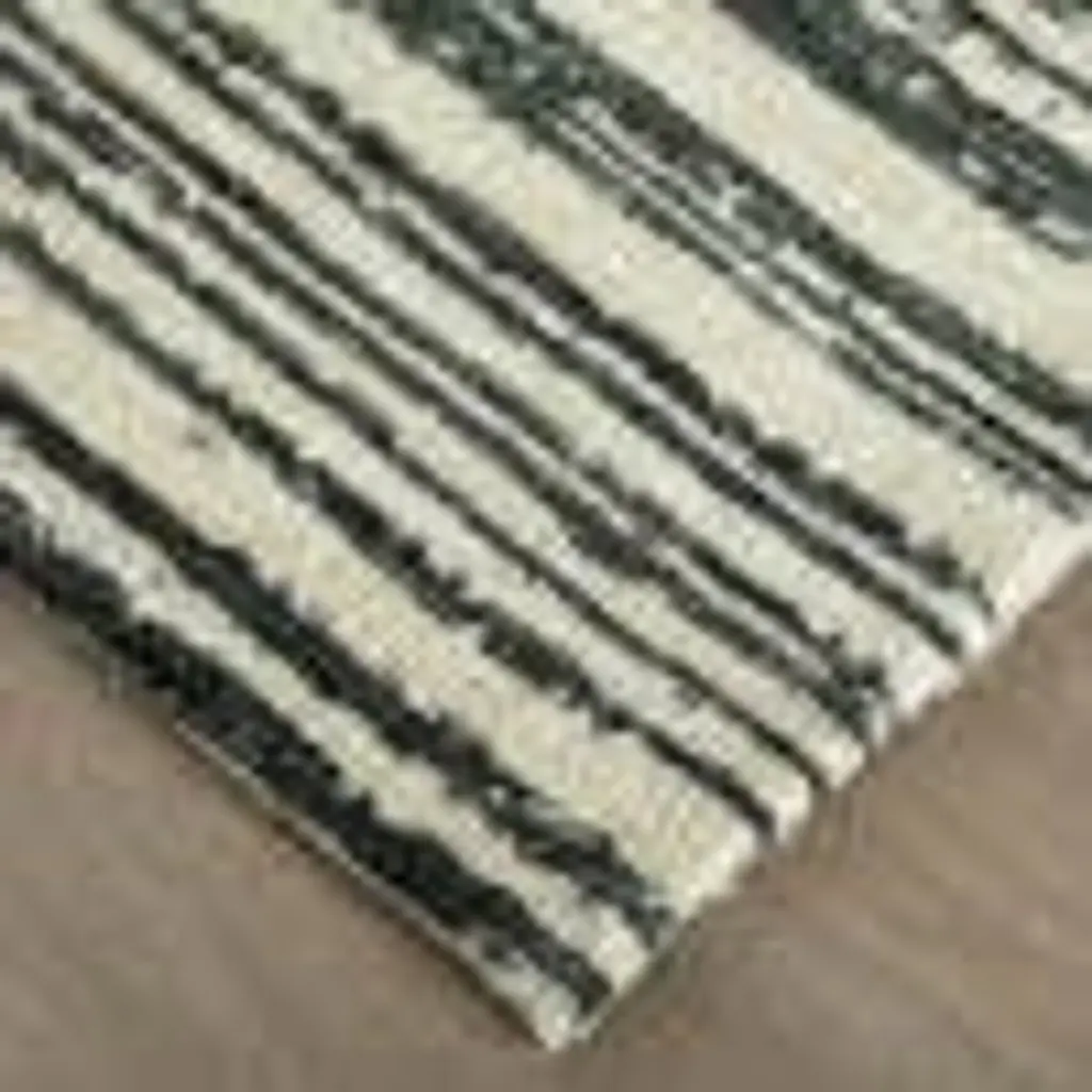 Collection: Colton Colors: Black, Ivory Construction: Machine Made Material: Face: 100%Polyester / Warp: Cotton Pile: Low Pile Pile Height: 0.4" Styles: Contemporary,Industrial Backing: Cotton Made In: India Thickness: 0.4" Price Range: $$$$$ (Affordable)