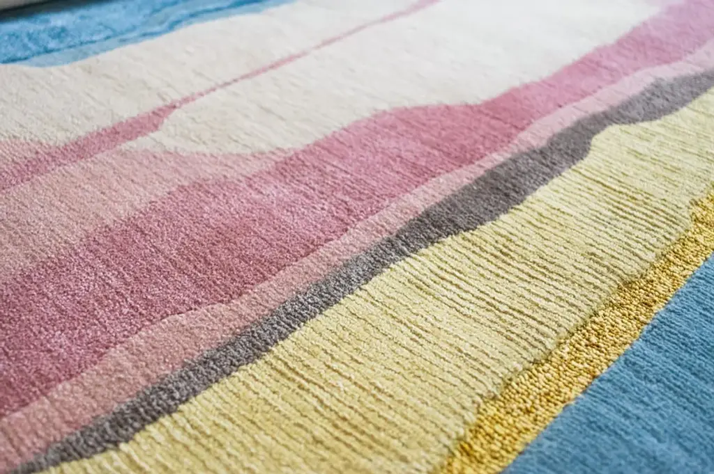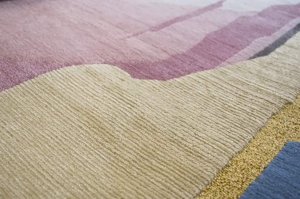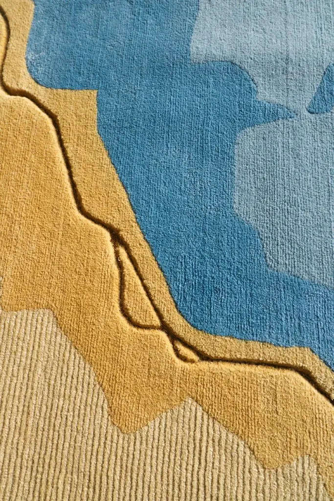 Material: Wool, Silk, Metallic yarnKnot Density: 100 knots/inch²Pile Height: 4 - 6mmTechnique: Hand-knottedCustom sizes and colors on requestThe Abstraction collection is based on the ideas of abstractionism and the generalization of forms. Still, instead of translating an image into its simplified form, Tapis Rouge created complex compositions from the interaction of multiple forms, colors, and geometric proportions. Experimentation is extended to the shape of the rug, which in some cases is round, to the fibers used, to knotting techniques, metallic details, different pile heights, and color combinations with a strong personality. Composition I.I hand-knotted rug with a knot density of 100knots/inch² comprises 33% Wool, 65% Silk, and 2% Metallic yarn with sculpted details that rise from the carving phase. The alternate engraved and embossed pile levels from 4 to 6 mm heights emphasize the design's forms.The rug can be ordered in four standard sizes or by custom request.
