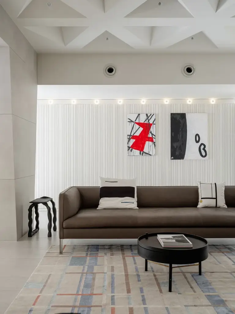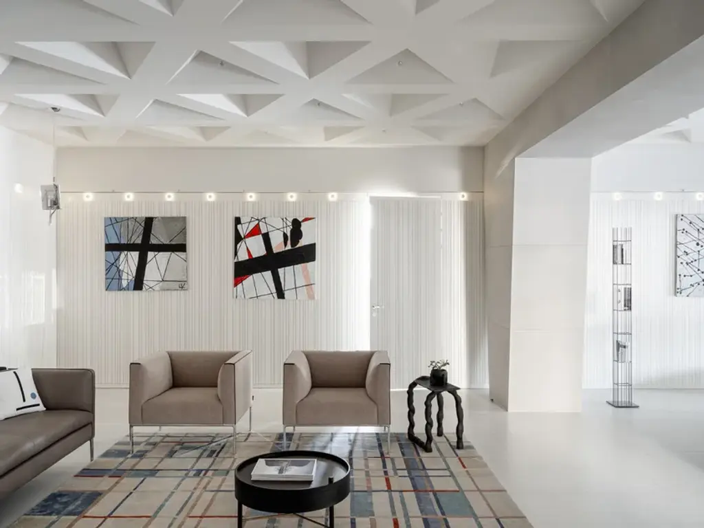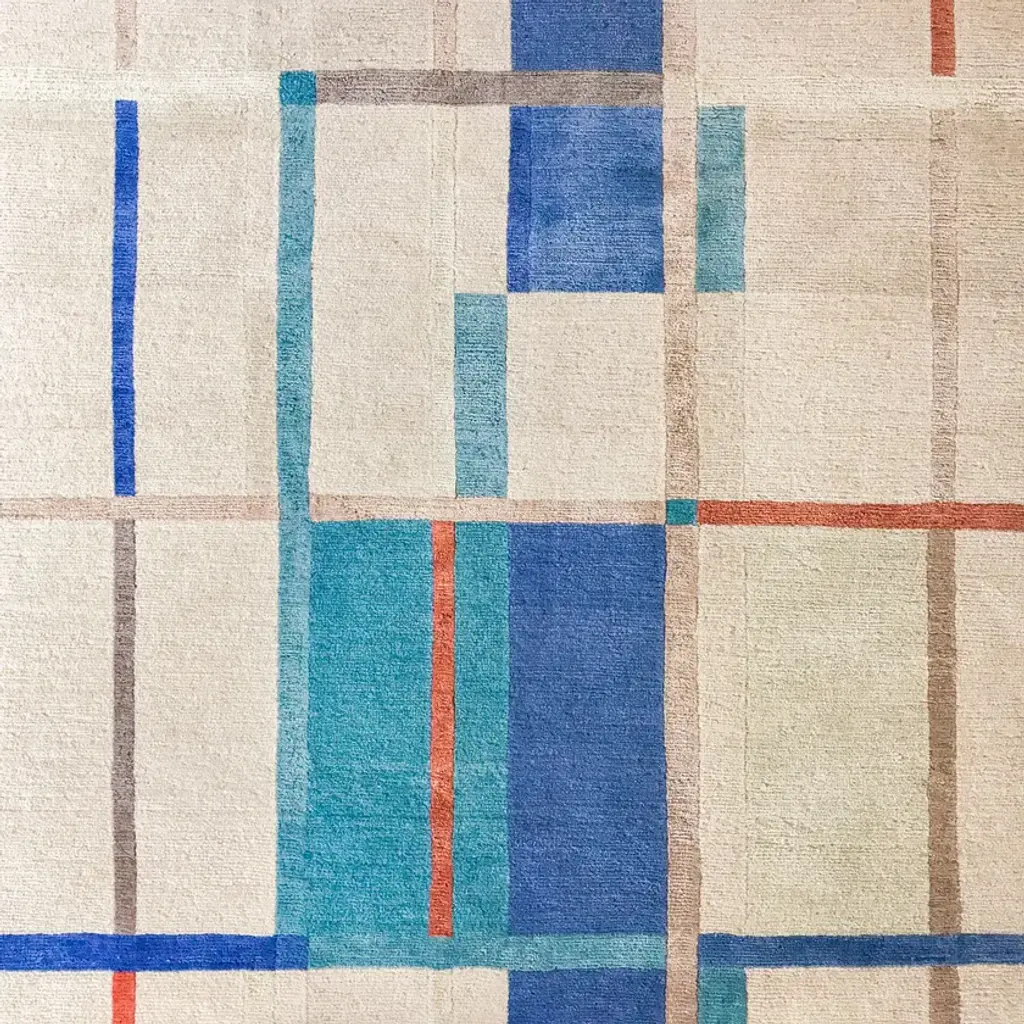 Material: Wool, SilkKnot Density: 100 knots/inch²Pile Height: 5mmTechnique: Hand-knottedCustom sizes and colors on requestThe Abstraction collection is based on the ideas of abstractionism and the generalization of forms. Still, instead of translating an image into its simplified form, Tapis Rouge created complex compositions from the interaction of multiple forms, colors, and geometric proportions. Experimentation is extended to the shape of the rug, which in some cases is round, to the fibers used, to knotting techniques, metallic details, different pile heights, and color combinations with a strong personality. Composition I.I hand-knotted rug with a knot density of 100knots/inch² comprises 33% Wool, 65% Silk, and 2% Metallic yarn with sculpted details that rise from the carving phase. The alternate engraved and embossed pile levels from 4 to 6 mm heights emphasize the design's forms.The rug can be ordered in four standard sizes or by custom request.