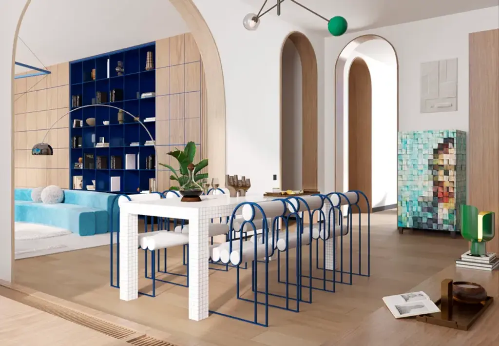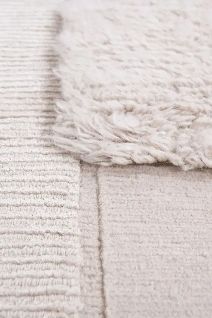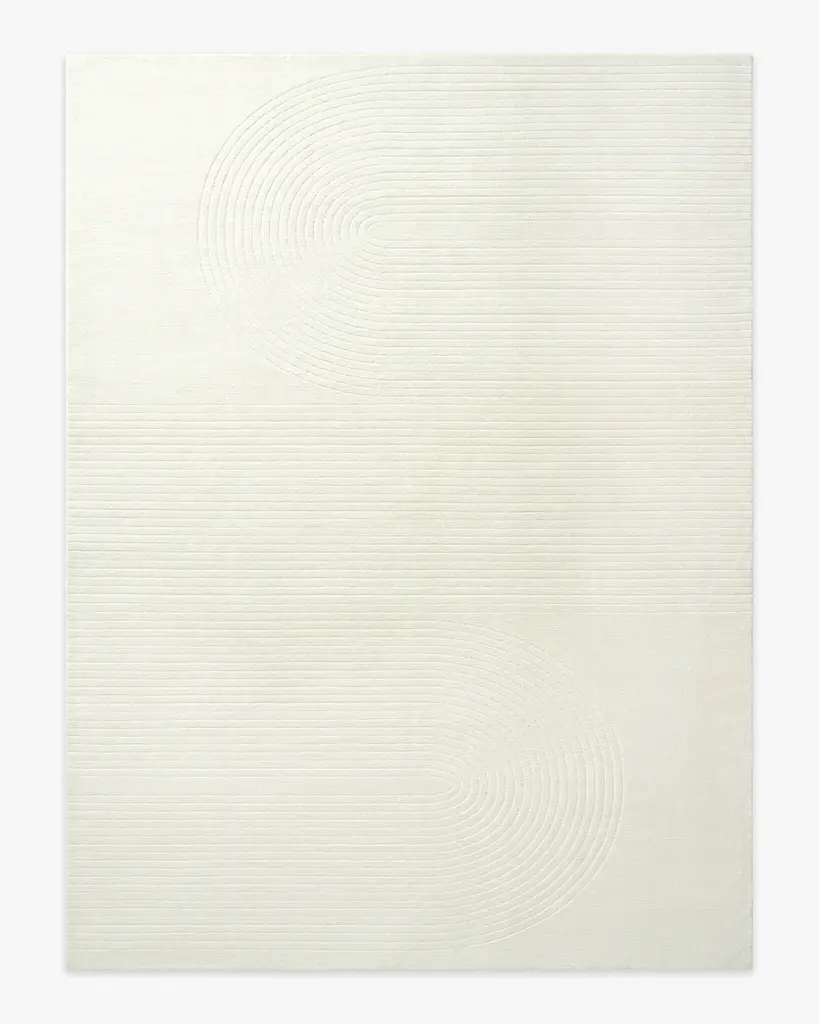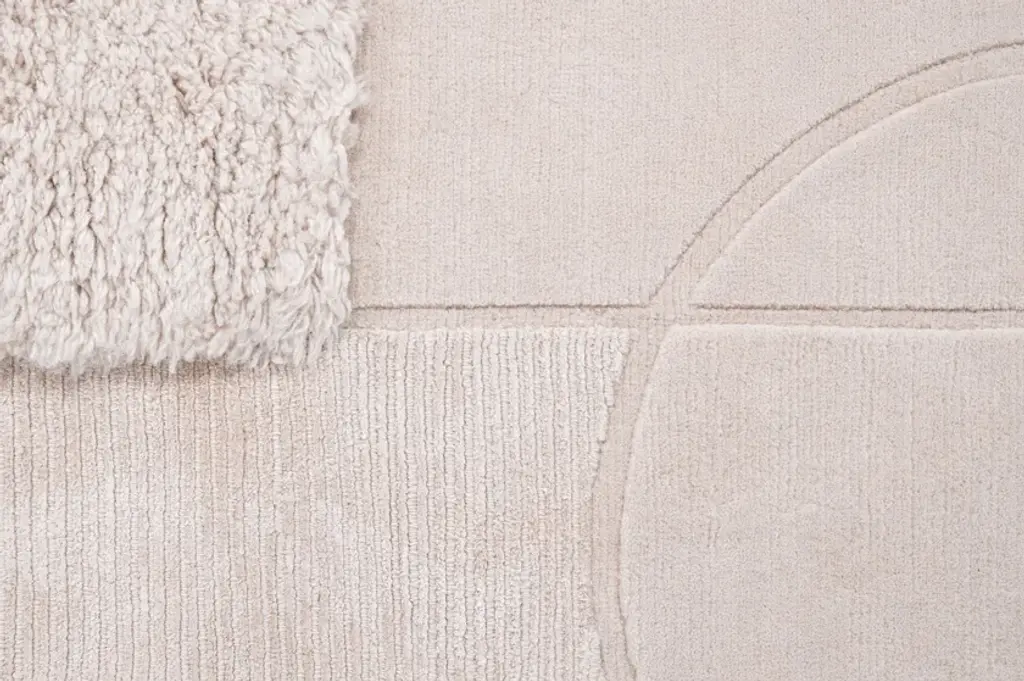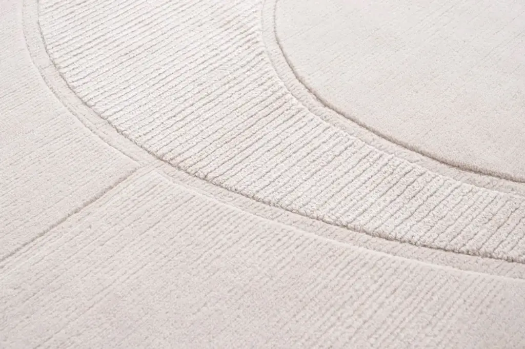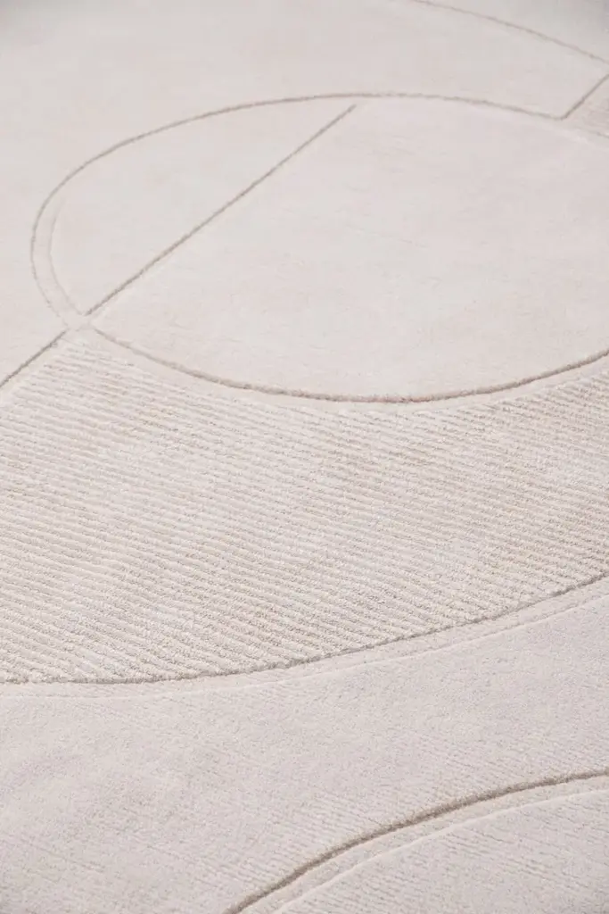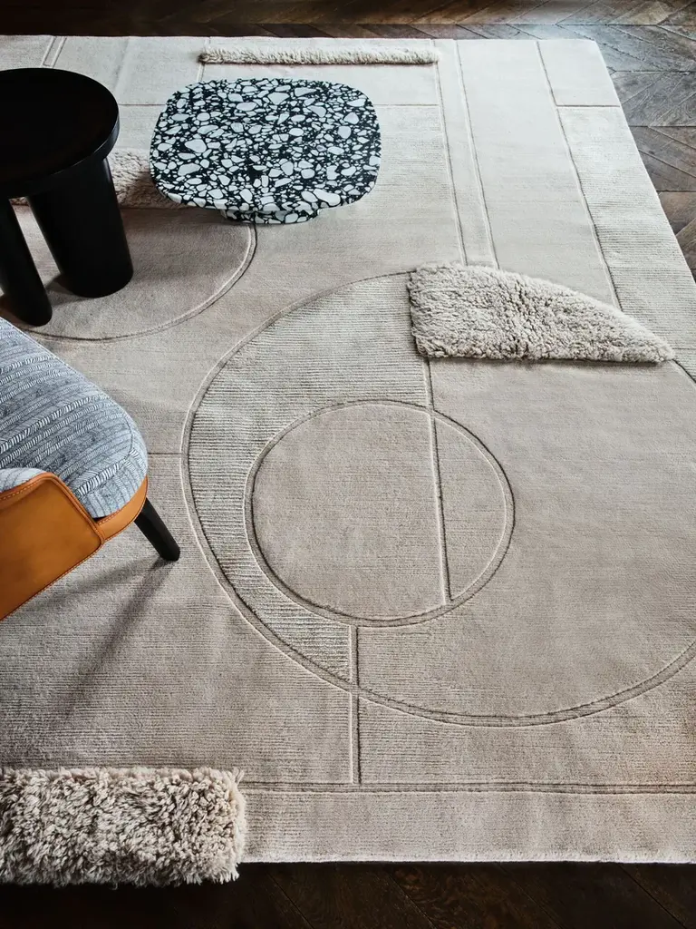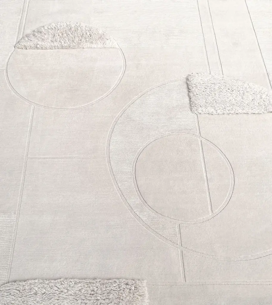 Material: Wool, Bamboo silkKnot Density: 60 knots/inch²Pile Height: 3 - 30mmTechnique: Hand-knottedCustom sizes and colors on requestThe Abstraction collection is based on the ideas of abstractionism and the generalization of forms. Still, instead of translating an image into its simplified form, Tapis Rouge created complex compositions from the interaction of multiple forms, colors, and geometric proportions. Experimentation is extended to the shape of the rug, which in some cases is round, to the fibers used, to knotting techniques, metallic details, different pile heights, and color combinations with a strong personality. Composition I.I hand-knotted rug with a knot density of 100knots/inch² comprises 33% Wool, 65% Silk, and 2% Metallic yarn with sculpted details that rise from the carving phase. The alternate engraved and embossed pile levels from 4 to 6 mm heights emphasize the design's forms.The rug can be ordered in four standard sizes or by custom request.