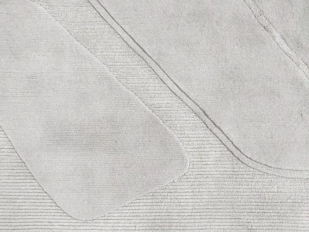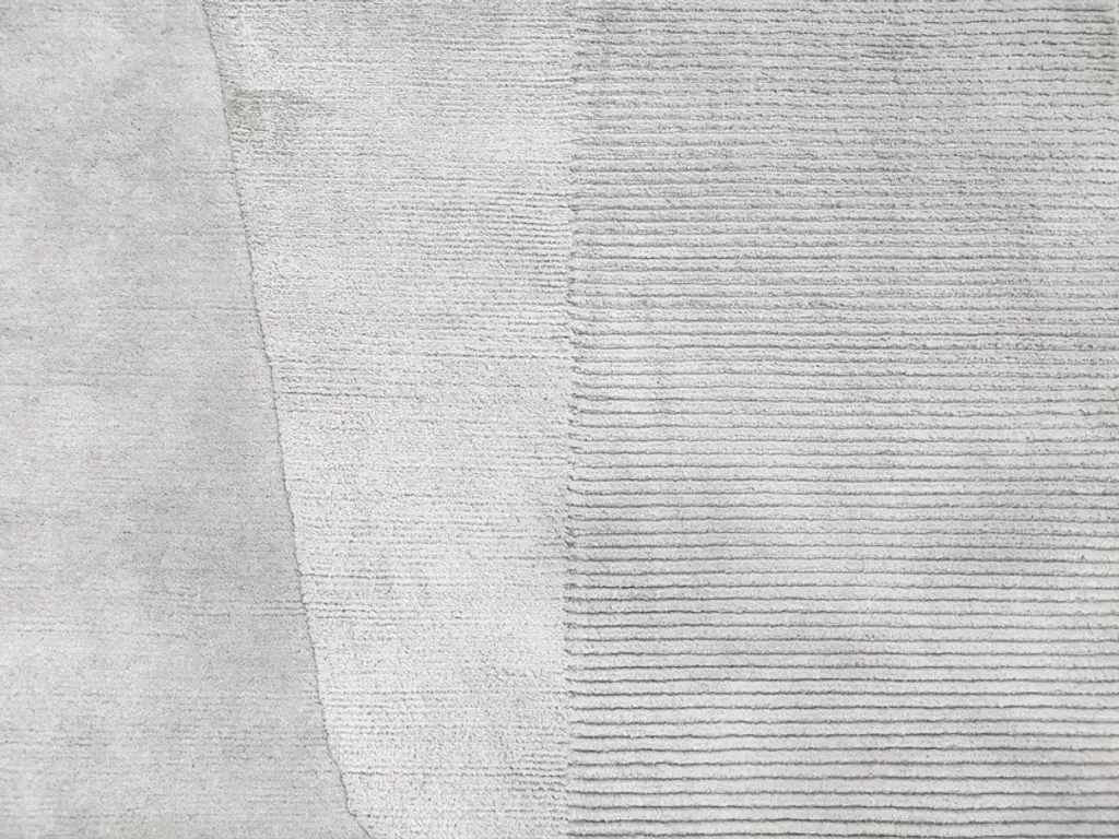 Material: Wool, Bamboo SilkKnot Density: 60 knots/inch²Pile Height: 4 - 8mmTechnique: Hand-knottedCustom sizes and colors on requestThe Abstraction collection is based on the ideas of abstractionism and the generalization of forms. Still, instead of translating an image into its simplified form, Tapis Rouge created complex compositions from the interaction of multiple forms, colors, and geometric proportions. Experimentation is extended to the shape of the rug, which in some cases is round, to the fibers used, to knotting techniques, metallic details, different pile heights, and color combinations with a strong personality. Composition I.I hand-knotted rug with a knot density of 100knots/inch² comprises 33% Wool, 65% Silk, and 2% Metallic yarn with sculpted details that rise from the carving phase. The alternate engraved and embossed pile levels from 4 to 6 mm heights emphasize the design's forms.The rug can be ordered in four standard sizes or by custom request.