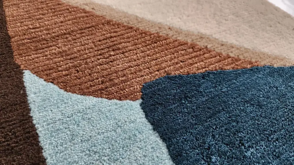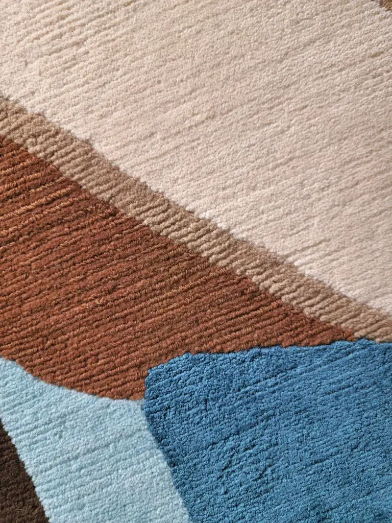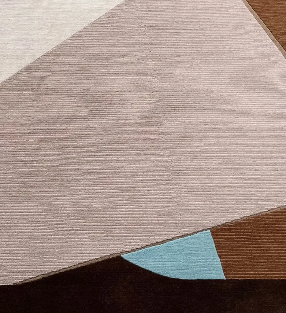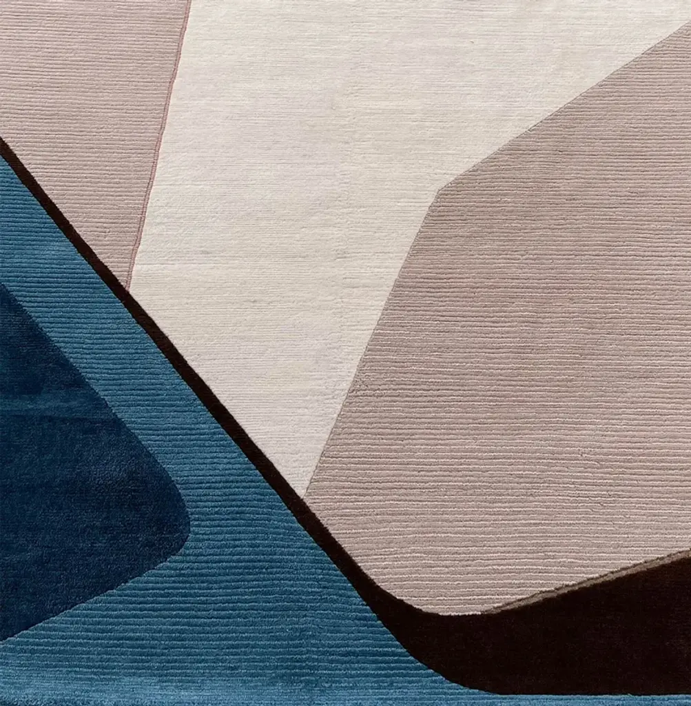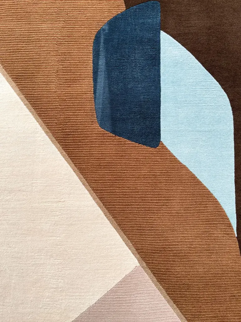 Material: Wool, Bamboo SilkKnot Density: 60 knots/inch²Pile Height: 4 - 6mmTechnique: Hand-knottedCustom sizes and colors on requestThe Abstraction collection is based on the ideas of abstractionism and the generalization of forms. Still, instead of translating an image into its simplified form, Tapis Rouge created complex compositions from the interaction of multiple forms, colors, and geometric proportions. Experimentation is extended to the shape of the rug, which in some cases is round, to the fibers used, to knotting techniques, metallic details, different pile heights, and color combinations with a strong personality. Composition I.I hand-knotted rug with a knot density of 100knots/inch² comprises 33% Wool, 65% Silk, and 2% Metallic yarn with sculpted details that rise from the carving phase. The alternate engraved and embossed pile levels from 4 to 6 mm heights emphasize the design's forms.The rug can be ordered in four standard sizes or by custom request.