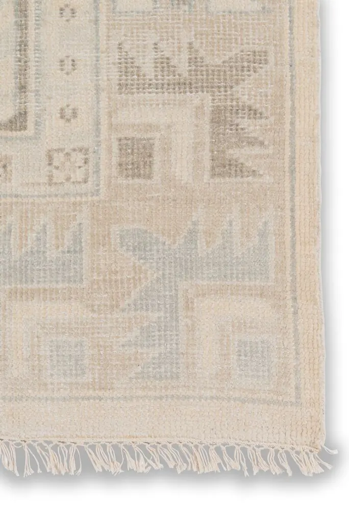 At home in nearly any decor, this rug is hand-knotted of wool with a stunning pattern inspired by traditional Oushak motifs. The textural fringe and washed color palette give it the appeal of a rare vintage find. We recommend a rug pad to extend the life of your rug and keep it securely in place.
